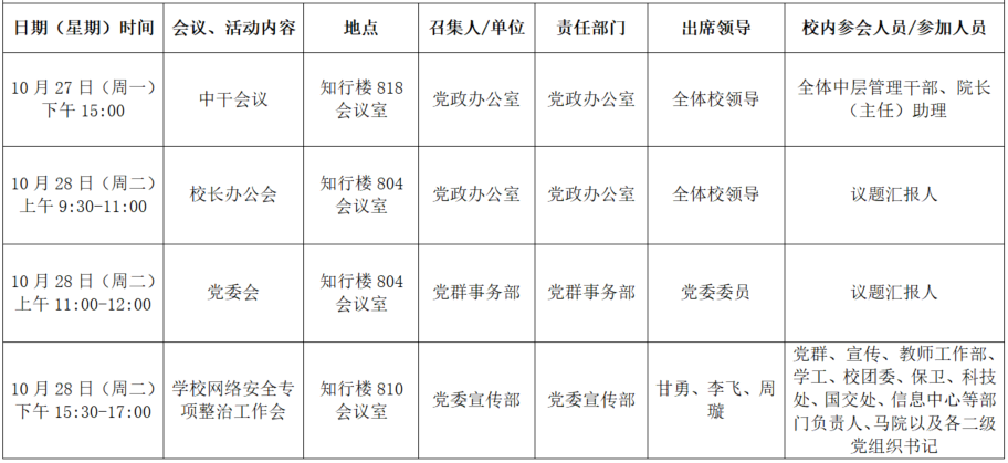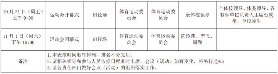 2025年秋季学期第九周全校性会议活动安排表