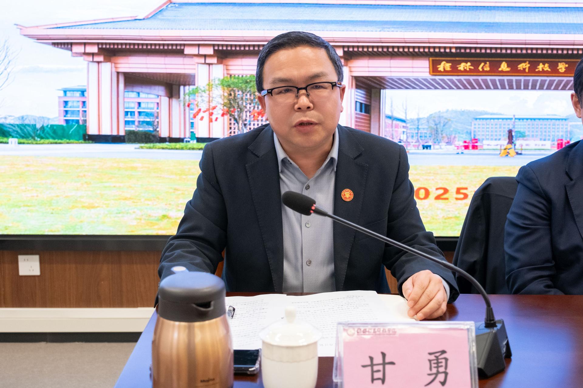 甘勇书记在讲话中就2025年学校党建工作展开部署:一是要做好学校意识形态工作和安全稳定工作,压实责任;二是加强学习,统一思想,全力迎接本科教学工作合格评估;三是根据上级党建和思政工作的要求,严格落实五张清单;四是全面推进1558三全育人体系各项工作,推进文化育人工程,营造浓厚的校园氛围,弘扬模范先进和榜样力量;五是积极申报区级及以上的党建项目,培育党建成果,打造党建品牌;六是强化办学品牌宣传,提升学校社会影响力;七是充分发挥思政课的引领作用,全面深化课程思政建设;八是进一步加强党建工作网络建设,不断的完善一站式学生社区建设;九是以党风促教风,加强清廉校园建设;十是加强党建信息化建设。2025年希望全体教职员工凝心聚力,抓好稳定,打造品牌,将党的政治优势转化为推动发展的强大动力,促进学校各项工作顺利进行。