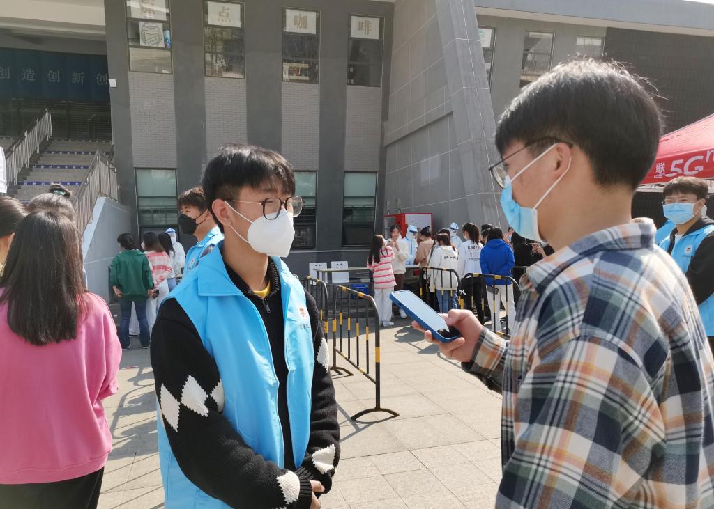 “我们在学校的培训下,熟悉了检测的整个流程。我们的同学都能在规定时间内到达指定地点,并按照要求间隔一米,有序安静的进行检测!”现场志愿者信息工程学院计算机科学与技术专业邵新源同学说到。