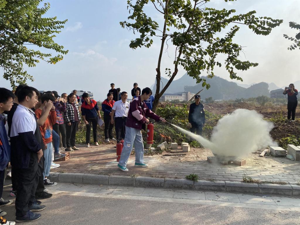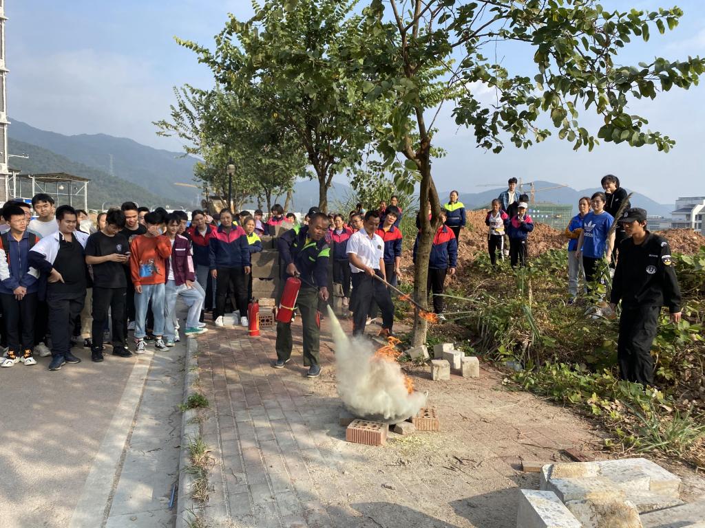 演练围绕“火灾案例分析、致灾因素、消防器材使用现场示范、火灾逃生演练”四个部分进行。首先,由后勤保障部王翀重点讲解了灭火器的不同类型、正确的使用方法及消防栓的正确操作方法,并现场示范,让大家进行灭火操作,牢记“一晃、二拉、三压、四喷”、“开箱门、取水带、拿水枪、开阀门”基本要领。最后,公寓生活老师黄媛丽结合近两年校园火灾案例,向师生们分析宿舍致灾因素,并通过现场模拟演练,让大家在发生火灾后学会如何冷静报警、处置、逃生。