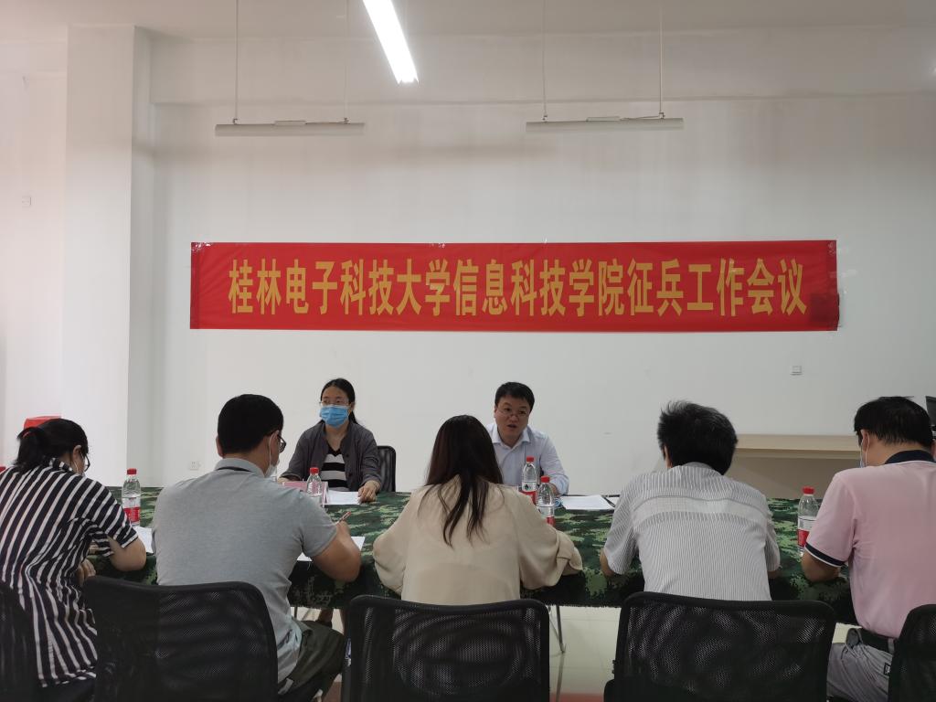 为扎实做好我院2020年征兵工作,5月19日上午,学院在征兵工作站会议室召开了征兵工作动员及部署会议。副院长彭倩、党委副书记唐步洲出席会议,各单位负责人及全体征兵工作业务人员参加会议。