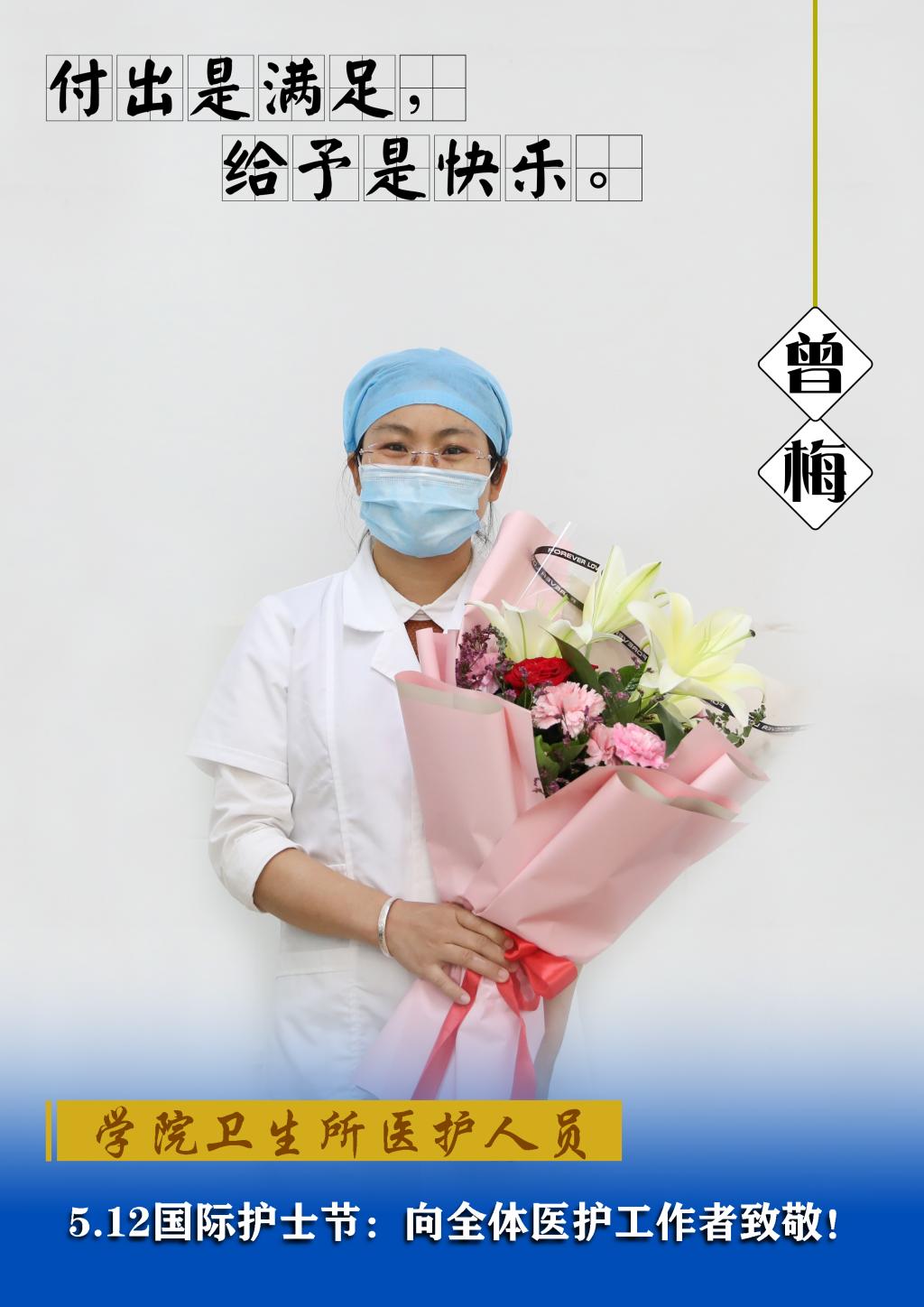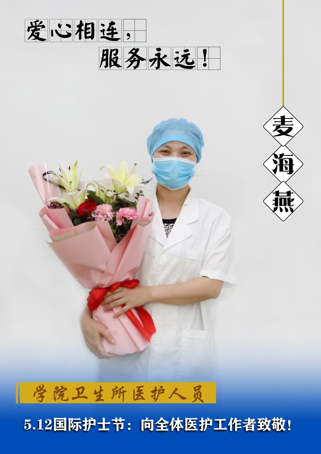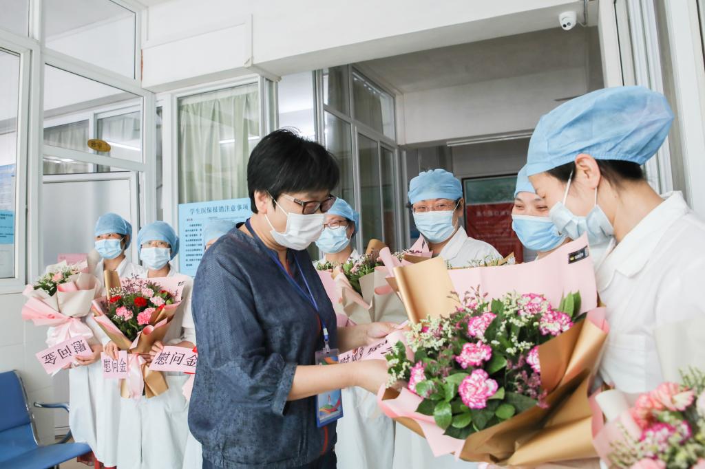 在慰问时,段复建院长代表学院向奋战在抗击疫情一线的医务工作者们致以诚挚的问候,对多年来一直守护学院师生健康安全所作出的努力表示感谢。段院长表示,在学院医护人手紧张的情况下,每一位医护人员在这次抗击疫情工作中义无反顾、坚守一线、勇挑重担、敬业奉献,学院师生非常感谢你们,今天是第109个国际护士节,我们把最美的鲜花送给新时代最可爱的人。