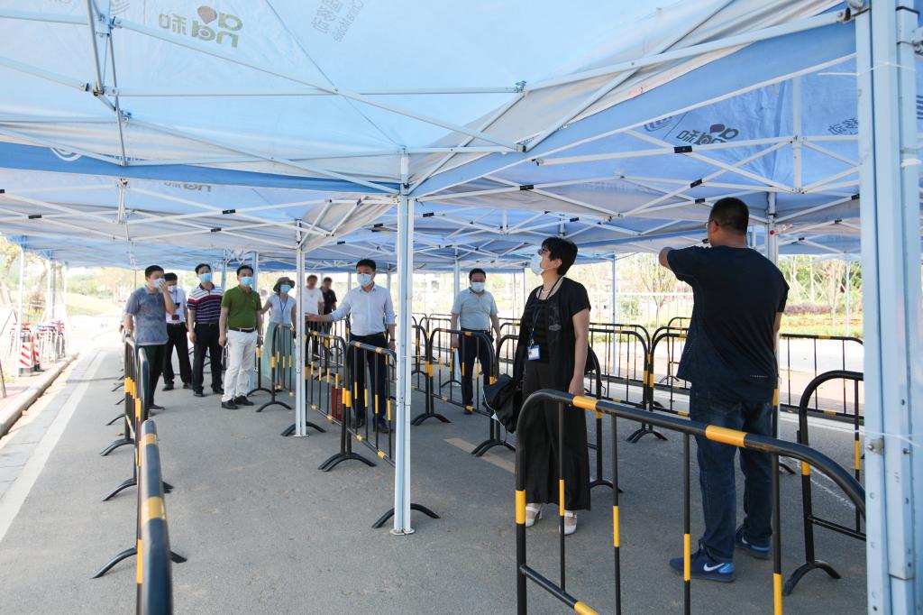 段复建院长一行重点查看了学院大门、学生返校报到点、食堂等关键场所,详细了解第二批学生返校入校期间的交通管制、报到流程、食堂就餐环境卫生、校园疫情防护和氛围营造等方面的筹备情况,听取相关部门负责人的情况汇报,并就全面细致做好学生返校各项准备工作提出指导性意见。
