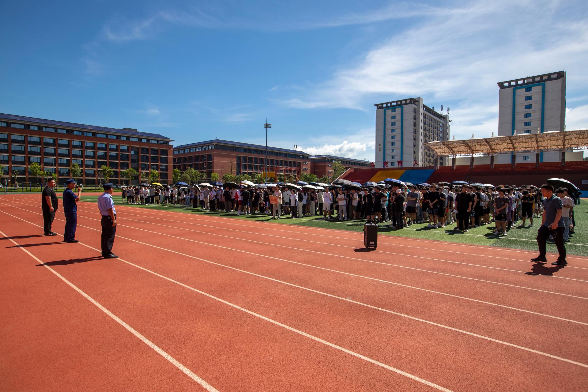 下午15∶00随着崇仁楼的警报声响起,宿舍区的同学们立即按照预案,有序地从各宿舍楼层开始疏散。消防救援队队员迅速到达现场,模拟了灭火、救援等场景,展示了专业的消防技能;医务、救援人员及时奔赴现场对伤员进行诊断救助。同学们在宿舍管理员、值班老师和逃生广播的指引下迅速到应急避难场地集合,清点人数及统计伤员情况。