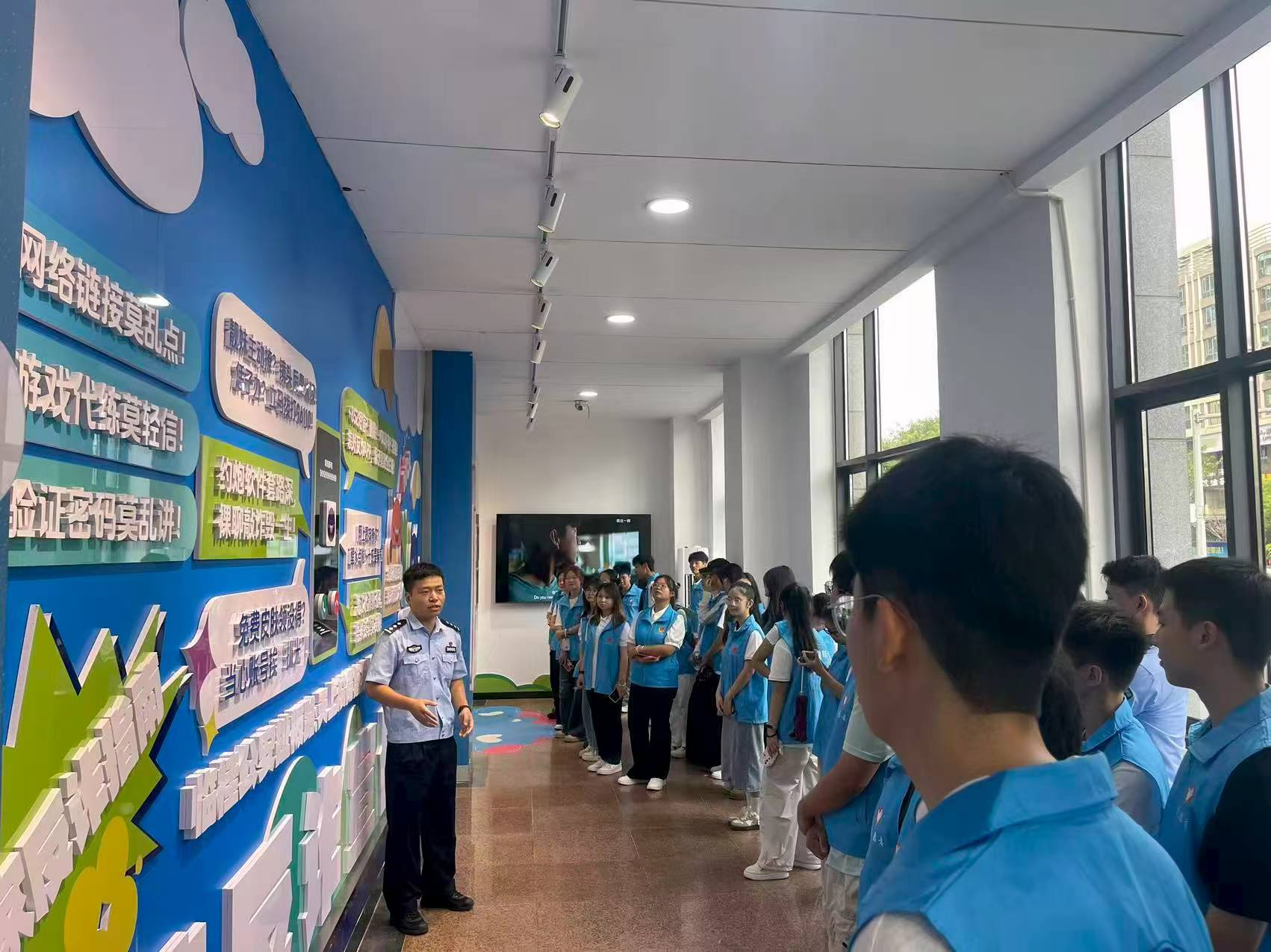 活动当天,学生志愿者们在民警的带领下参观了反诈宣传展厅。展厅内,色彩鲜艳、设计活泼的图文展板与真实案例视频相结合,以生动有趣的方式向学生们普及了各类反诈知识,让大家在轻松愉快的氛围中学习到了实用的防骗技巧。