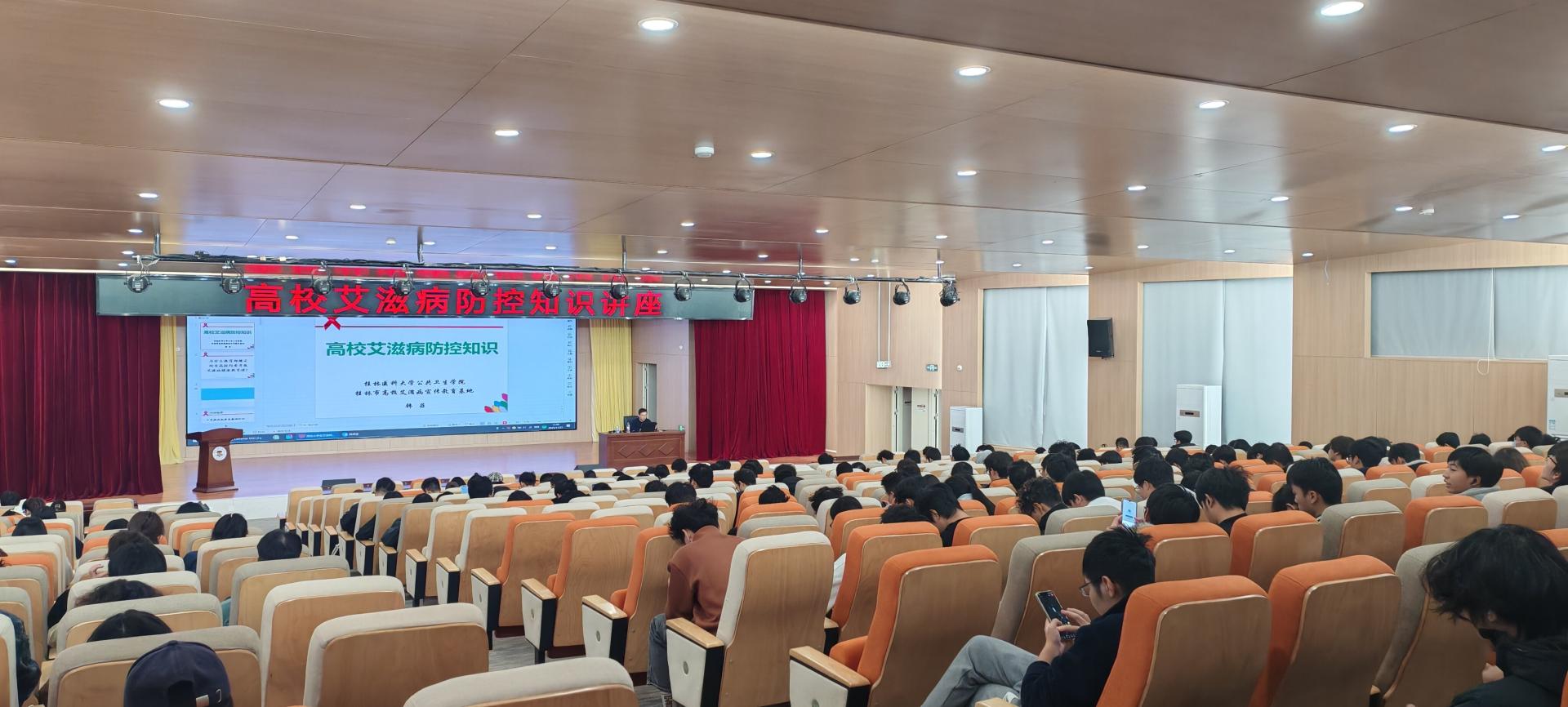 2025年12月1日是第38个“世界艾滋病日”。为进一步加强学校预防艾滋病教育工作,增强学生防艾意识,维护学生身心健康,创造健康的生活学习环境,11月21日下午,学校邀请桂林医科大学公共卫生学院韩菲老师在F107报告厅开展“高校艾滋病防控知识”专题讲座,380余名学生代表参加讲座。