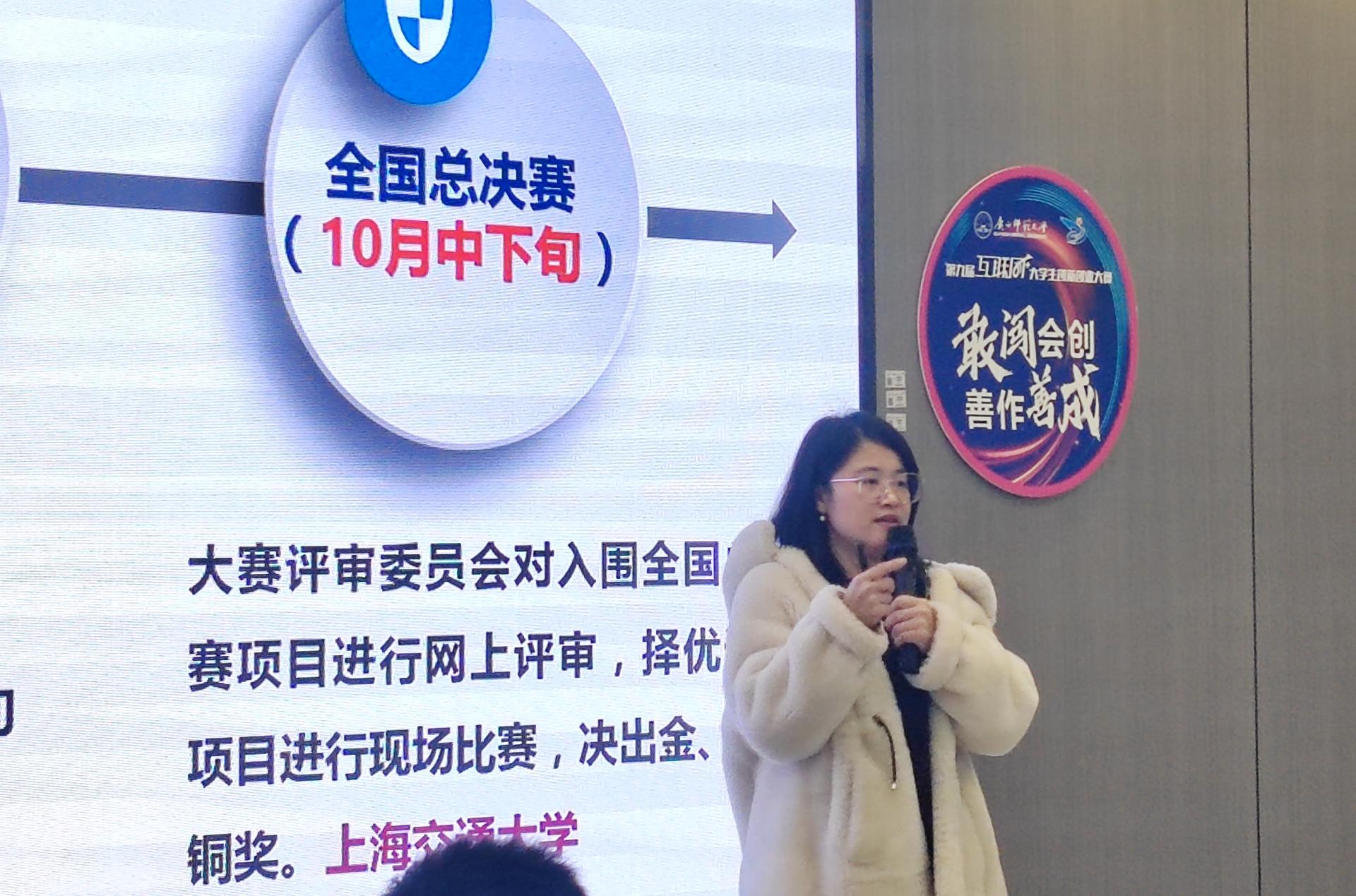 图2 广西师范大学创新创业学院实践部部长黄娜娜解读中国国际大学生创新大赛赛事