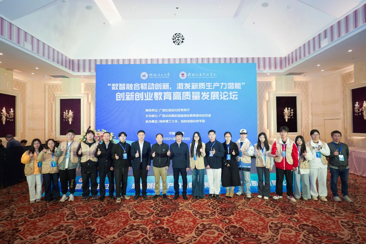 为深入学习贯彻全国教育大会精神和习近平总书记给中国国际大学生创新大赛参赛学生代表的回信精神,11月23日,由广西本科高校创新创业教育指导委员会主办,beat365官网与桂林理工大学联合承办的“数智融合驱动创新,激发新质生产力潜能”创新创业教育高质量发展论坛在桂林召开。桂林理工大学党委副书记、校长王敦球,学校党委副书记、校长解庆林,自治区教育厅高等教育处二级主任科员刘尚谱,国内创新创业领域行业专家、广西本科高校创新创业教育指导委员会成员、全区普通本科高校创新创业工作教育负责人及教师代表200余人参加会议。