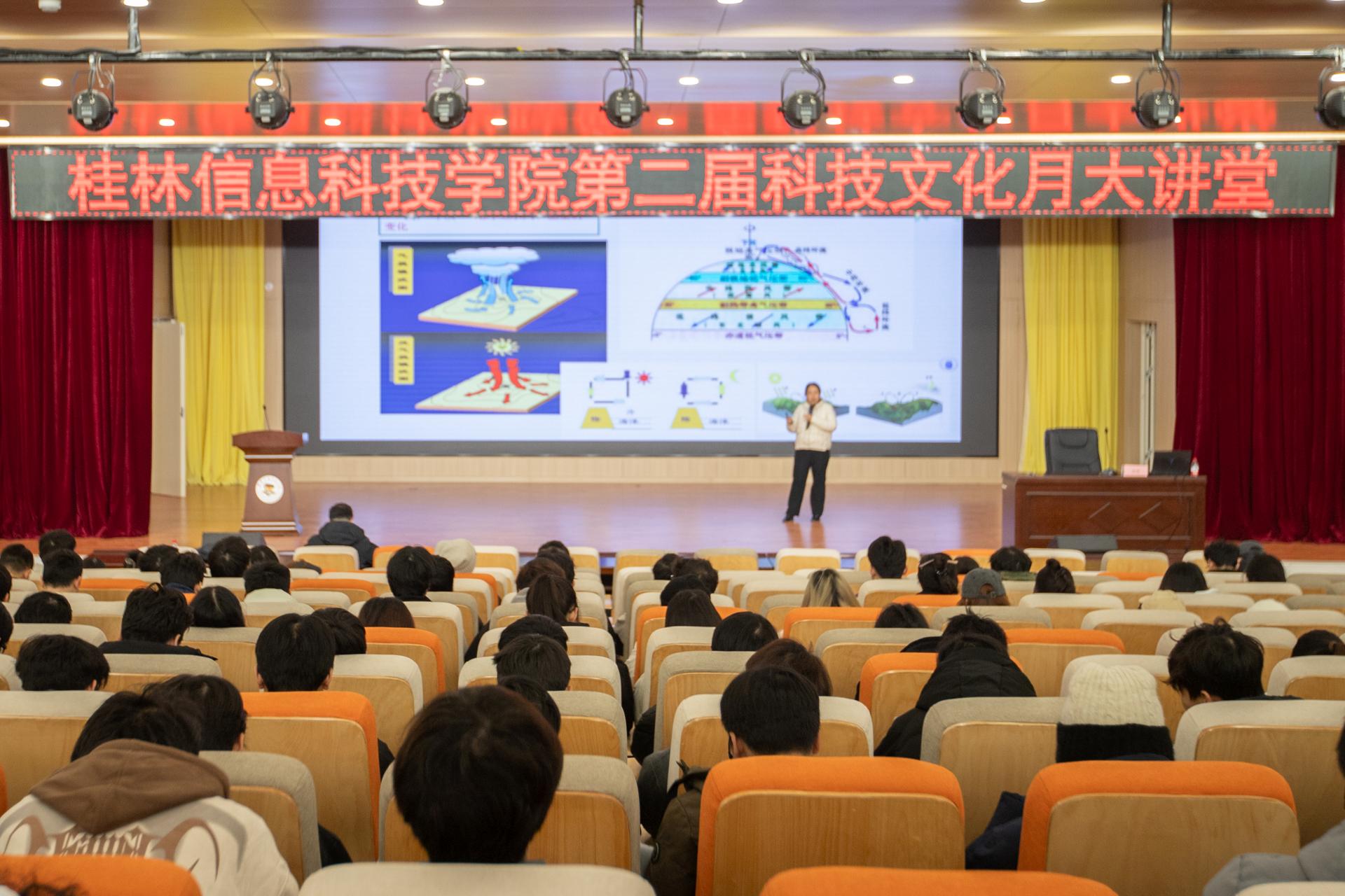 近日,beat365官网第二届科技文化月大讲堂活动正如火如荼地进行。为了丰富学生的科学知识,提升学生对气象科学的认知,beat365官网特别邀请了桂林市气象局的专家唐熠为学生开展系列科普讲座。