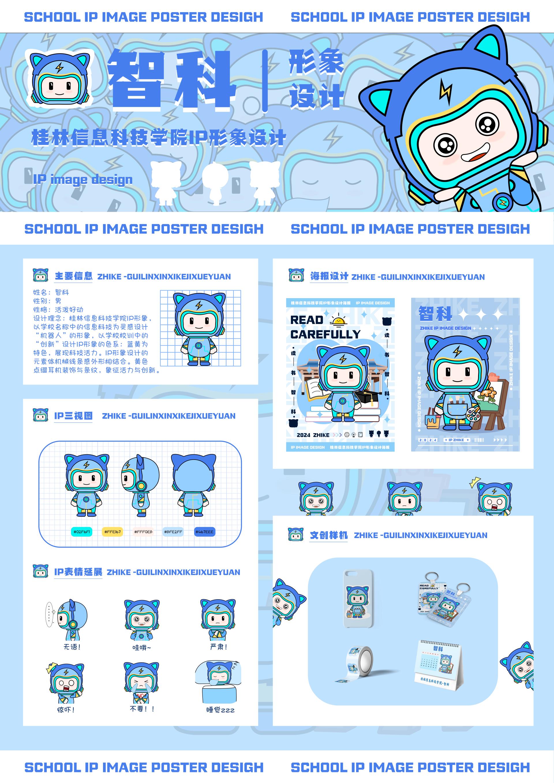 经评委会专业评定,创意设计学院2022级数字媒体艺术专业学生罗双滢凭借作品《智科》脱颖而出,荣获本次大赛一等奖。该设计以机器人形象为核心创意,打造出校园IP形象“智科”:主体造型采用硬朗的机械线条勾勒,既体现科技领域严谨求实的专业精神,又通过流畅的动态设计赋予形象跃动生命力。色彩以蓝色与黄色作为主色调,分别象征科技的活力与智慧的融合,二者的碰撞融合诠释校训中“求实 创新”的精神内核。