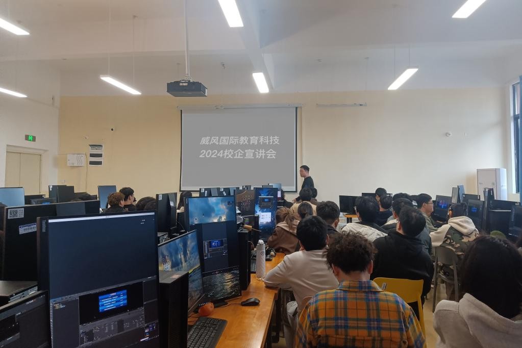 宣讲伊始,凤凰威风国际教育科技有限公司的代表向在场的师生们详细介绍了公司的基本情况和业务范围。作为国际教育领域的领军企业,凤凰威风国际教育公司一直致力于提供高品质的教育服务和文化交流项目,其业务范围涵盖国际课程合作、留学咨询、教师培训等多个领域。接着,公司代表针对动画、数字媒体艺术的专业特点,详细阐述了专业岗位的任职要求、工作内容以及发展前景,让在场的同学们对凤凰威风国际教育公司的岗位需求有了更加清晰的认识。在互动环节,同学们就岗位工作内容、发展前景等问题进行了提问。公司代表耐心解答,并作就业指导答疑。