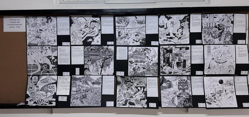 12月09日,创意设计学院在四教一区二楼举办中华传统诗词主题《平面构成》课程作品展,此次作品展由严若谨老师指导。