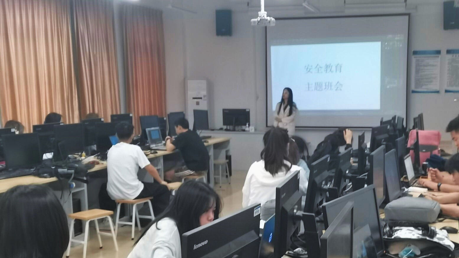 会中,班主任提到在疫情期间学生在校应该做好自我防护,坚持戴口罩,勤洗手,注意个人卫生,不扎堆。积极配合学校的工作,同学们要严格遵守在校隔离的相关规定,配合核酸检测、测量体温,主动及时报告身心健康状况。同时,也不要忽略宿舍用电、用水安全等问题。对于未能返校的同学在学习上面遇到的问题,希望同学们可以互帮互助,及时共享课程的学习资料,线上线下学习相结合。希望通过本次安全教育主题班会,增强同学们的安全意识,树立更坚定的抗疫信心,共克时艰。