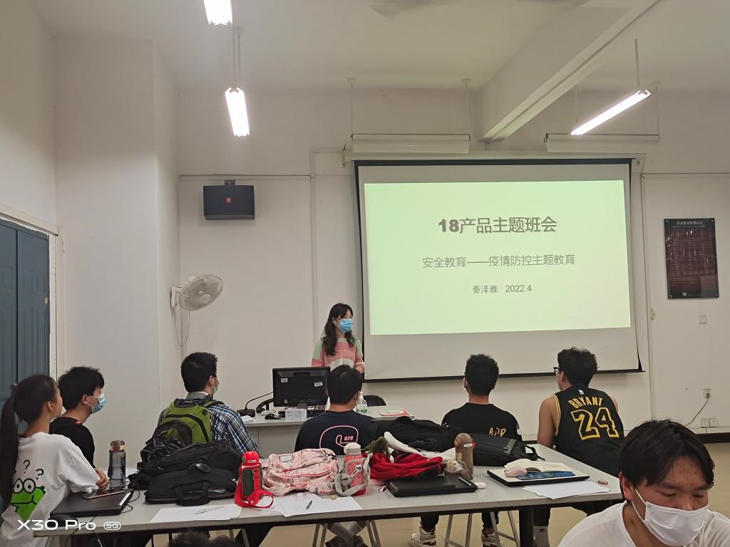 2022年4月12日创意设计学院18级产品设计召开安全教育主题班会,班主任秦泽雅老师主持会议。