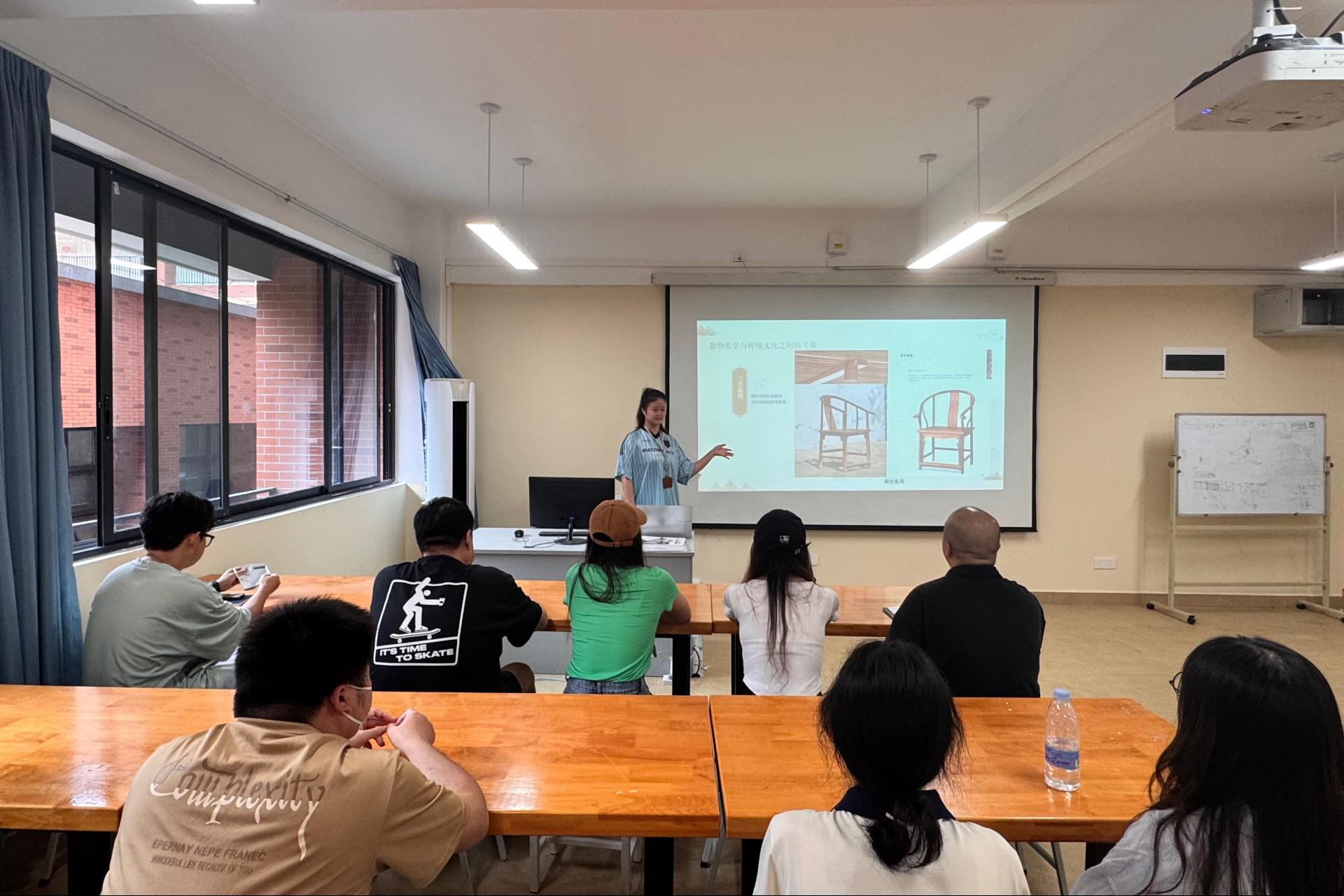 主讲教师以“器物造型主观审美”课程为切入点,系统阐释了中国传统造物思想中的“器以载道”哲学。通过青铜器饕餮纹的威严庄重、宋代瓷器冰裂纹的禅意美学、漆器云雷纹的流动韵律等经典案例,揭示传统纹饰背后“天人合一”“格物致知”的文化密码。课程创新性地构建“纹饰数据库+数字建模+场景应用”三维教学体系,引导学生从文化符号提取、造型语义转译到现代产品设计实现全流程实践。