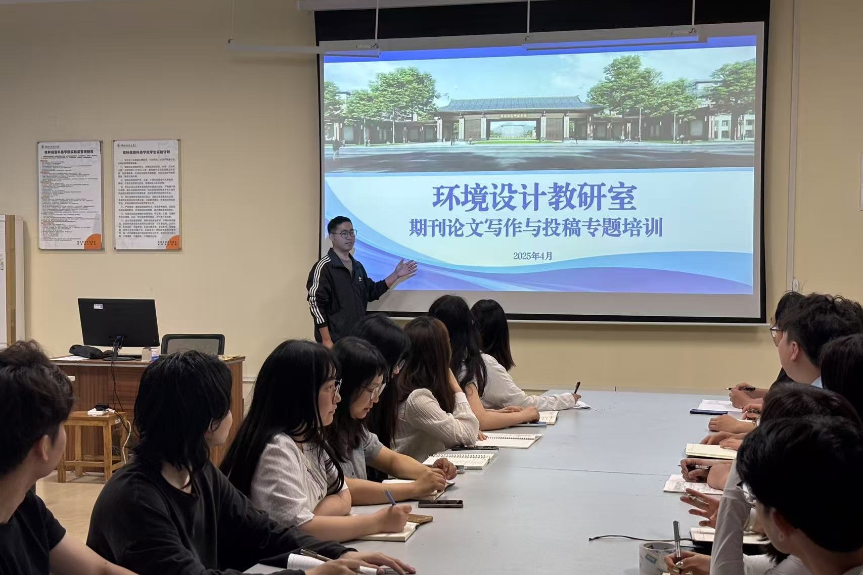为提升教师科研能力与学术成果产出水平,4月10日下午,环境设计教研室在德远楼E312教室组织开展了“期刊论文写作与投稿”专题培训活动。本次会议特邀写作经验丰富的徐祥伍老师担任主讲,教研室全体教师参与学习。
