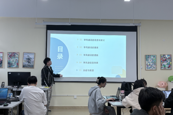 2025年3月25日,创意设计学院2022级环境设计专升本2班在李运龙老师的组织下,成功召开了以“精研善学扬优风,奋发图强谱新章”为主题的学风建设班会。班会围绕提升版权意识、弘扬原创精神、加强团队合作及严肃考试纪律展开。