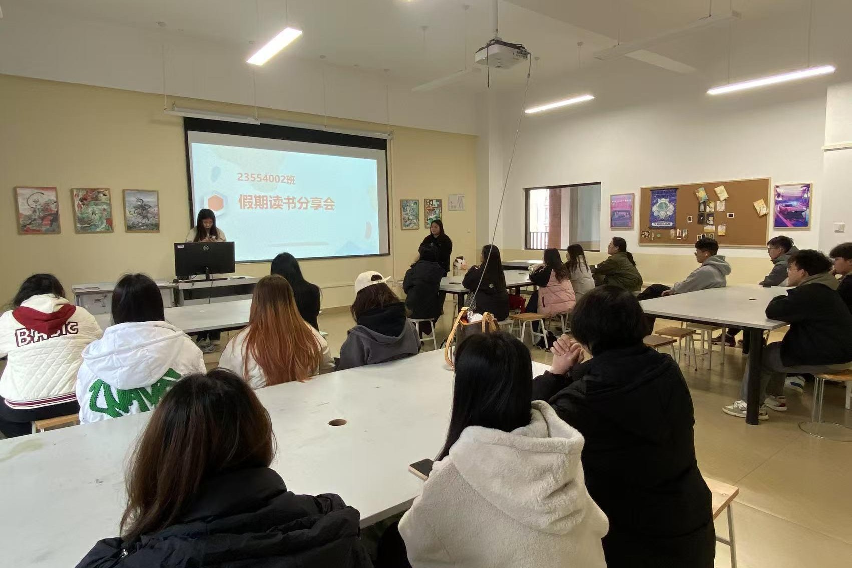 为提升同学们的阅读兴趣,培养深度思考能力,创意设计学院环境设计2班于2月27日,在德远楼E308教室成功举办假期读书分享会。本次读书分享会由班主任刘义铭老师主持,全体同学参与。