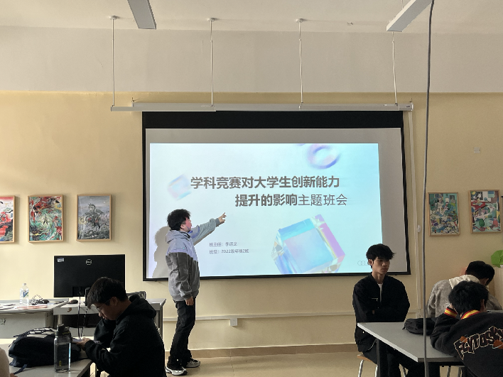 最后,李运龙老师分享了学科竞赛对大学生创新能力提升的实际案例,证明了参与竞赛对学生创新能力的显著提升。他勉励同学们积极参与学科竞赛,不断提升自己的创新能力和综合素质。此次班会激发了同学们对学科竞赛的热情,也为他们未来的学习和参与竞赛指明了方向。