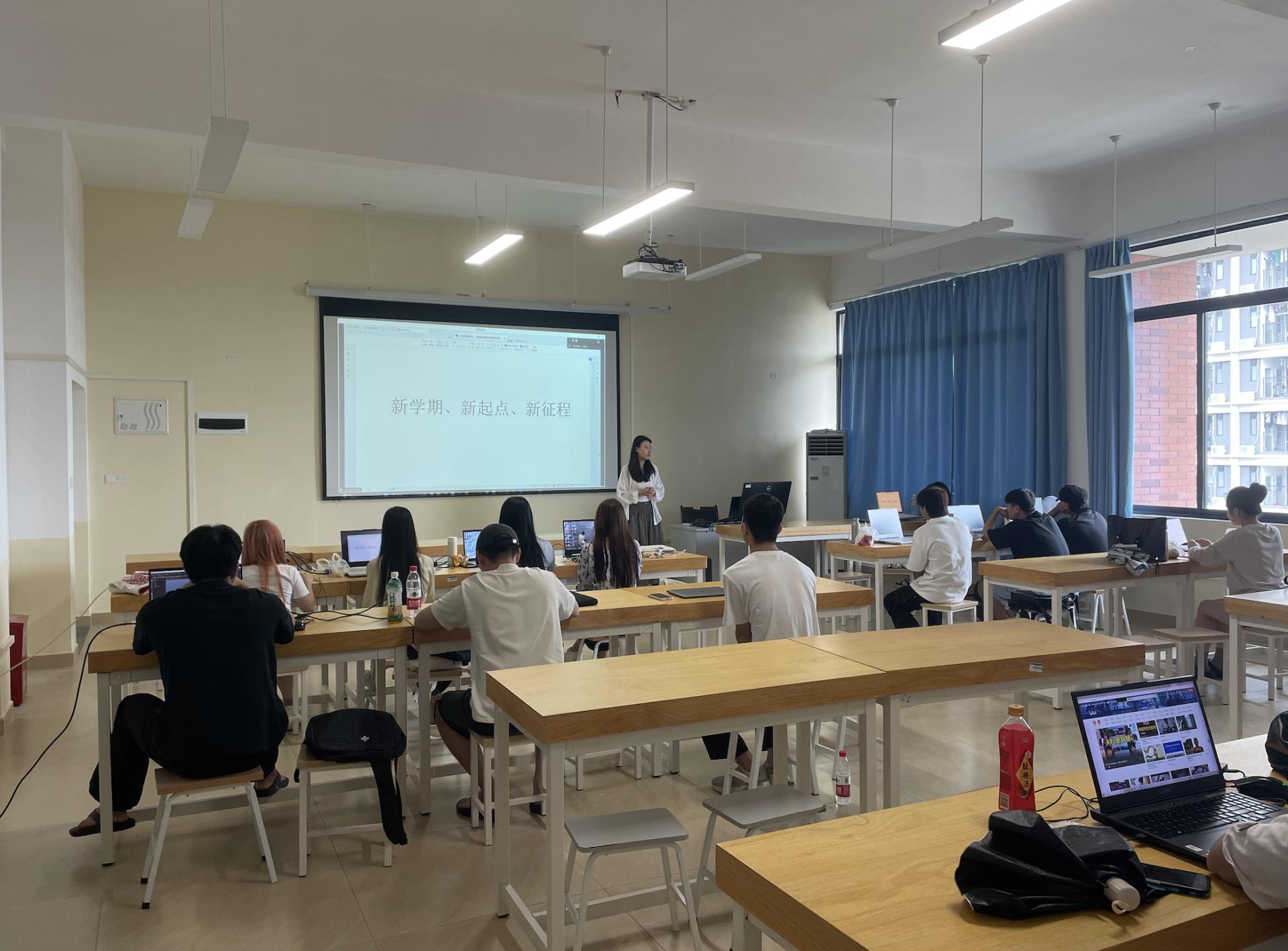 在21级数字媒体艺术专升本班的班会上,班主任申航硕老师首先向同学们传达了学校对新学期的期望与要求,鼓励大家以全新的面貌迎接新学期,把握新起点,开启新征程。老师强调,新学期不仅是知识的积累,更是个人成长和素质提升的关键时期,希望同学们能够珍惜时光,努力学习,不断提升自我。