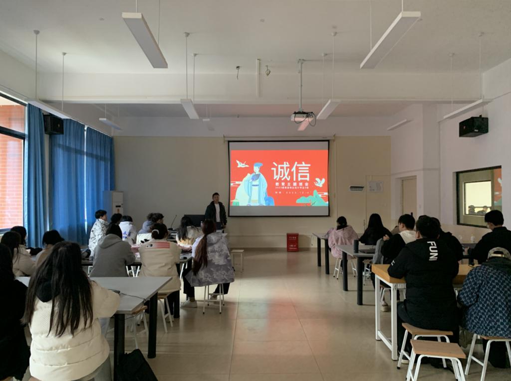 随着期末考试的临近和考试科目的增多,为了加强同学们的考试诚信意识,23级视觉传达设计专业23552001班、23552002班、23552003班分别于12月4日、12月5日和12月12日开展了以"诚信"为主题的班会活动。班会由班主任蔡佳航老师主持。