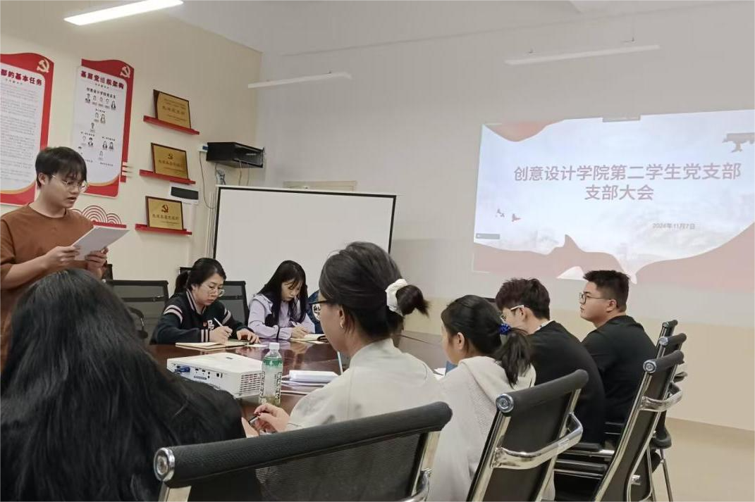 为更好发挥党员的先锋模范作用,推动支部党建工作向上发展,2024年11月7日,创意设计学院第二学生党支部在E502召开党支部大会,会议由党支部书记刘思主持,支部全体成员参会。
