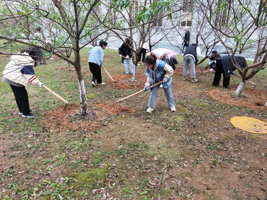 此次志愿服务的活动内容是为树木施肥,同学们一下课就来到了活动区域给树木进行施肥。首先由后勤人员给同学们分发了施肥工具,给大家安排了工作并讲解了施肥方法。同学们分成了两组,一组挖土、埋土,一组施肥,同学们个个干劲十足,虽然很累,但是同学们的脸上洋溢着笑容。