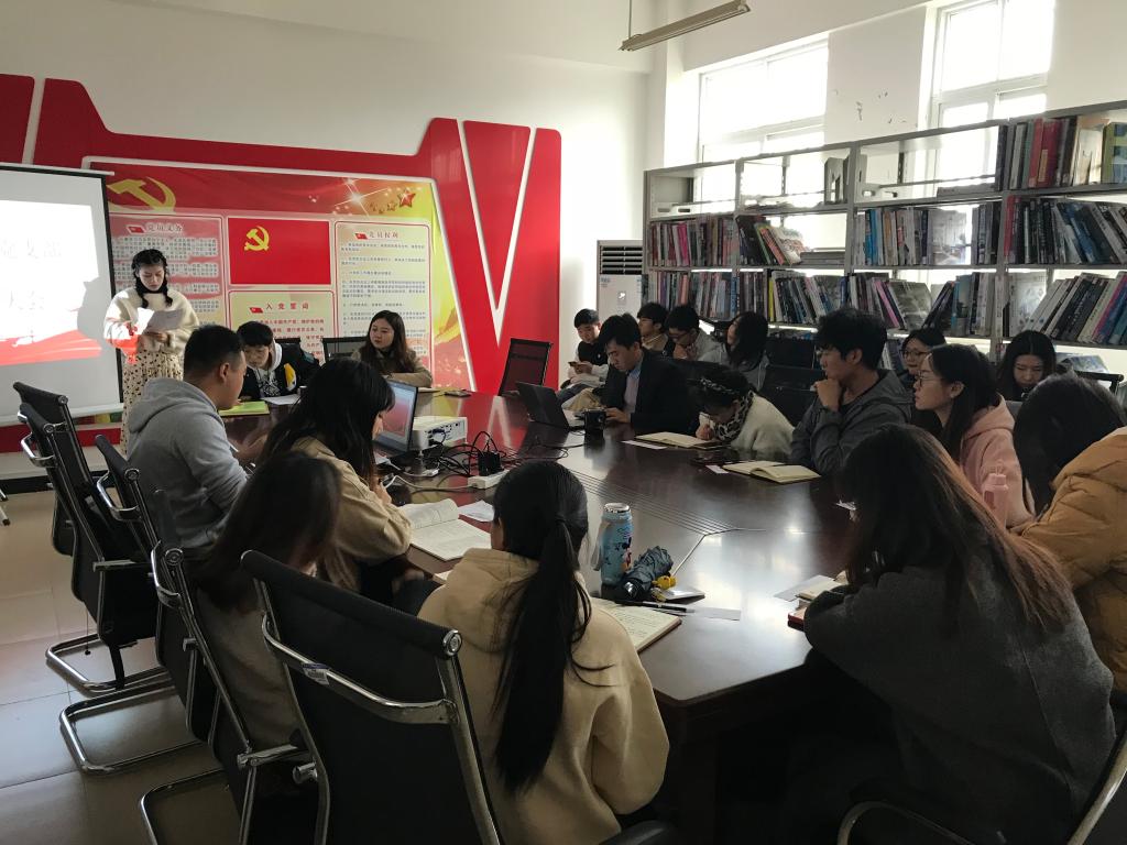 会上,第九、十四小组学生党员以放映PPT并讲解的形式,将自己对《习近平谈治国理政》第三卷中的第九章《谱写新时代中国特色社会主义新篇章》与第十四章《把人民军队建成世界一流军队》的相关学习内容和学习心得与大家分享。