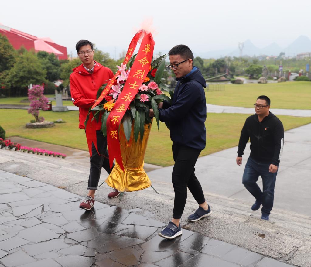 活动开始,党员代表为革命烈士敬献花篮,全体党员列队肃立默哀、行鞠躬礼,以表对革命烈士的敬意和追思之情。随后,全体党员重温入党誓词,铿锵的誓言在纪念碑园内回荡着,唤起了全体党员入党时的深刻回忆。