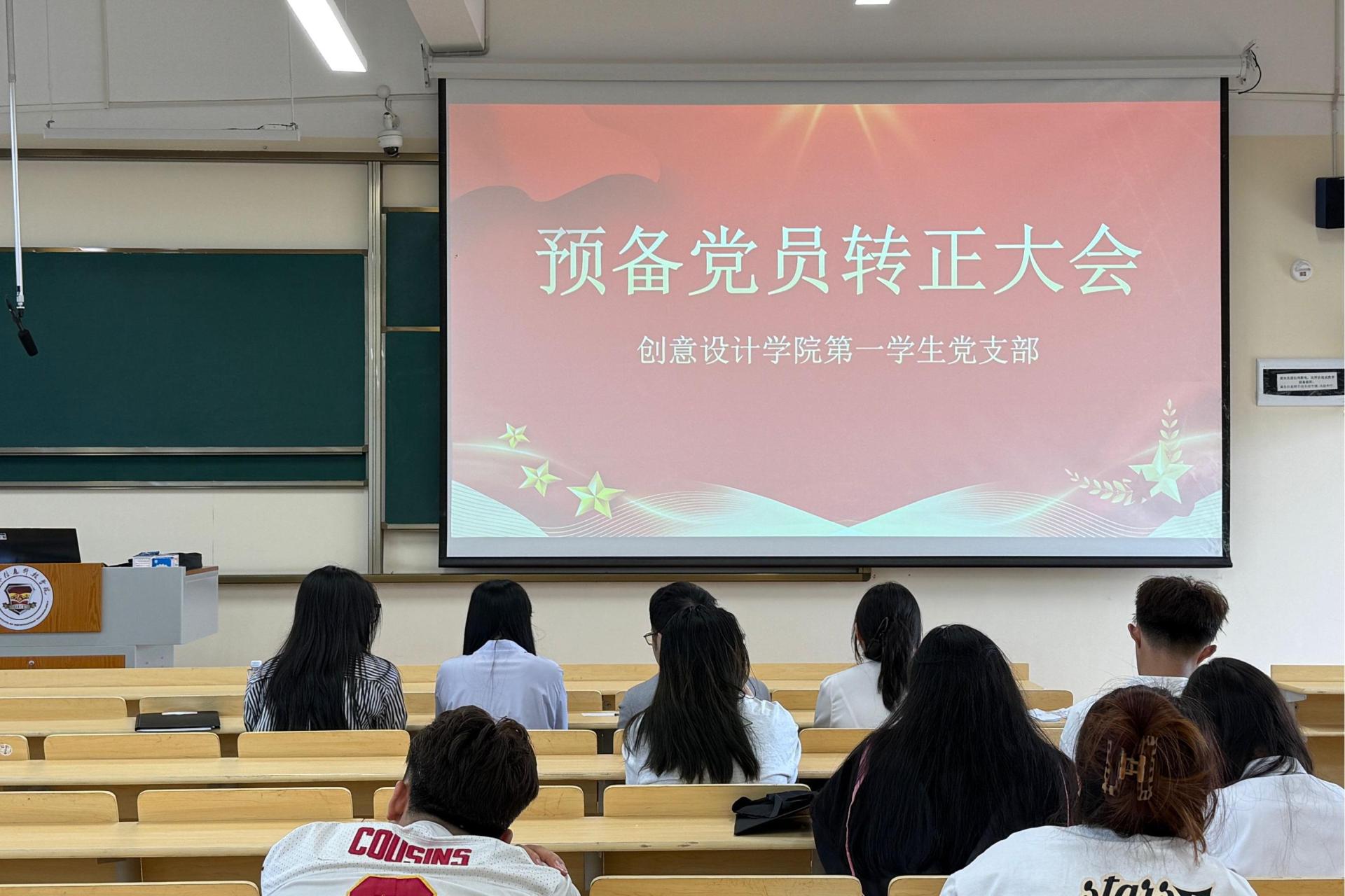 为进一步做好党员发展工作,加强党支部队伍建设,2025年5月30日,创意设计学院第一学生党支部在敏思楼D509教室召开预备党员转正大会,大会由支部书记周金悦主持,全体党员参会。