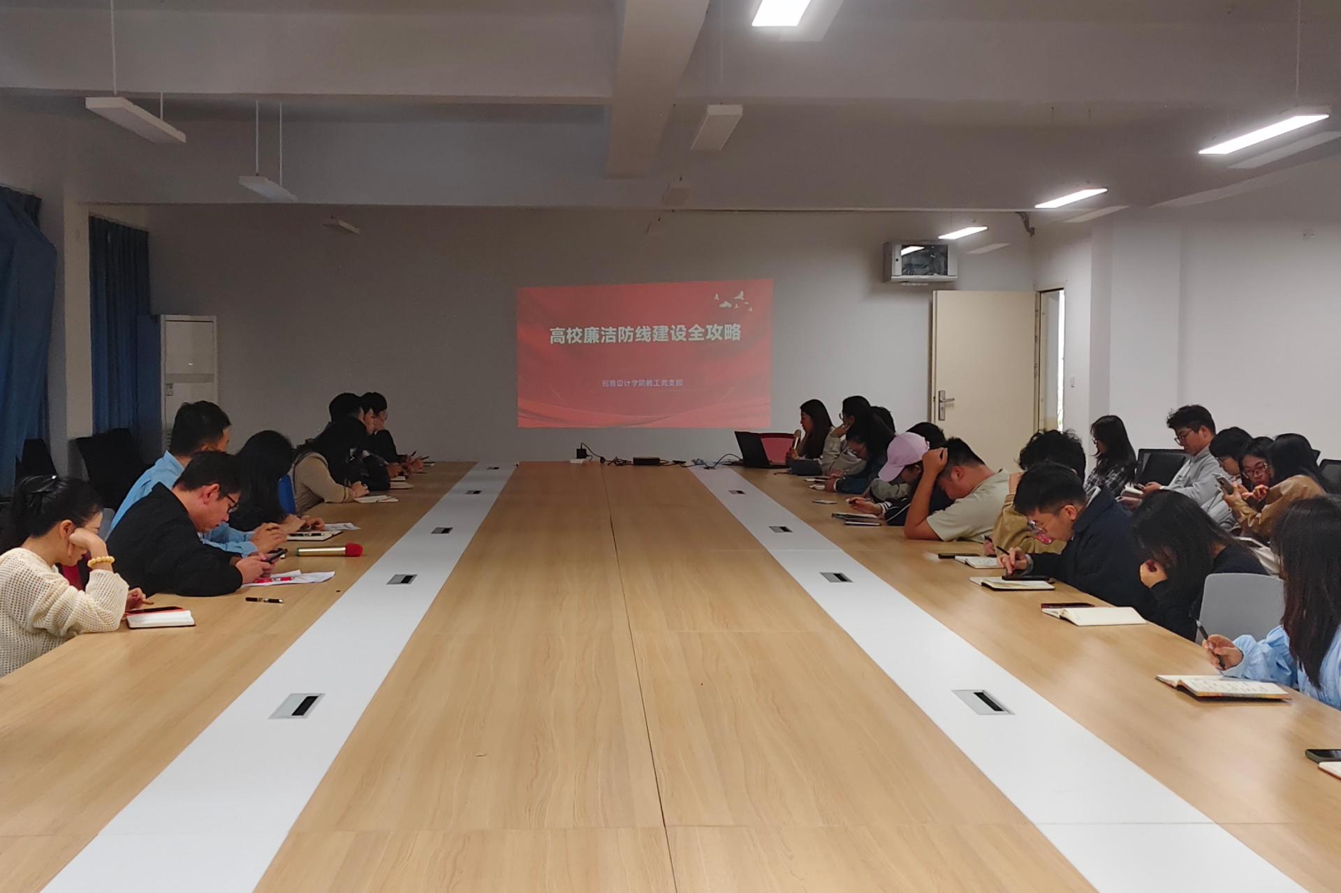 为深入推进高校廉洁防线建设,创意设计学院教工党支部于11月7日在守正楼G501召开“高校廉洁防线建设全攻略”专题会议。会议由支部书记梁瑛主持,全体党员教师积极参与,旨在通过专项督察与治理,强化基本建设、职称评优、学术诚信及科研经费等重点领域的廉洁风险防控,营造风清气正的育人环境。