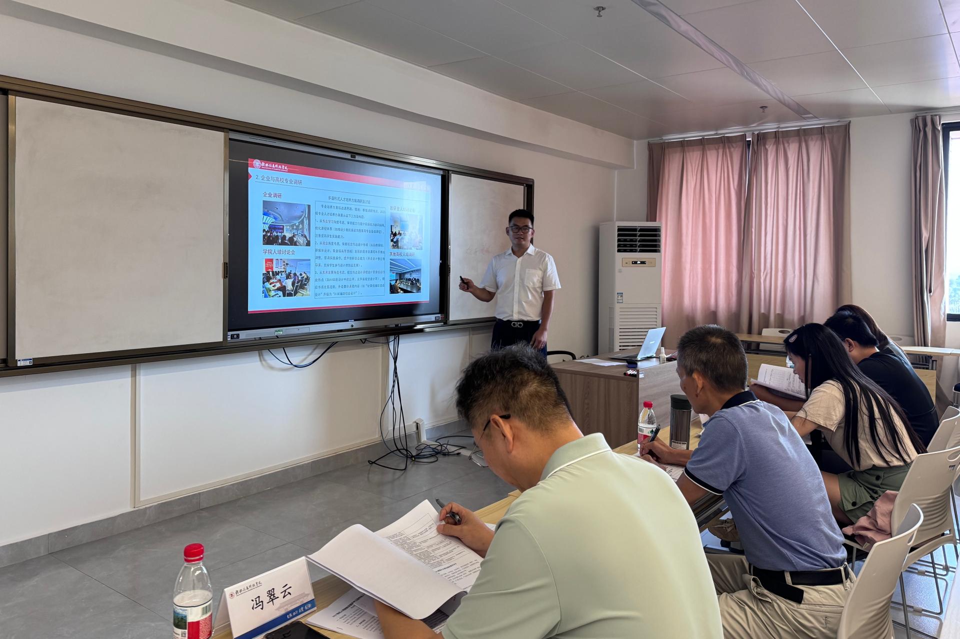 为提升人才培养质量及特色,进一步优化人才培养方案,2025年9月18日,2025级人才培养答辩会在知行楼702举行,数字媒体艺术教研室副主任刘昊参与2025级人才培养答辩会。创意设计学院院长黄晓瑜、beat365在线唯一官网专家冯翠云、何少佳,桂林电子科技大学吕屏教授,以及桂林国际电线电缆集团技术总监邓哲琪等校企代表组成评审团,共同为数字媒体艺术专业人才培养质量“问诊把脉”。会上,刘昊副主任从专业发展现状与面临挑战、培养...