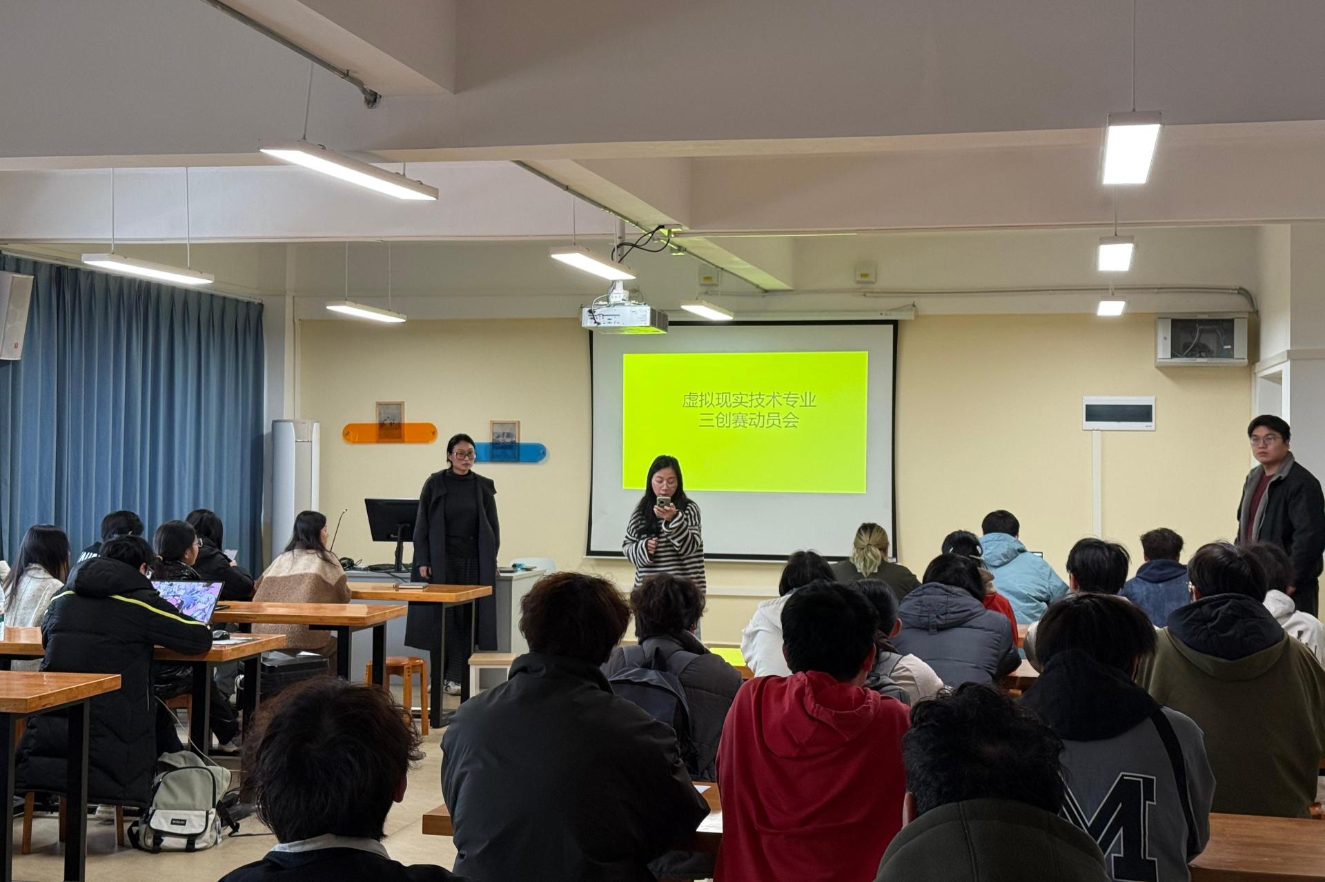 为备战“三创赛”,12月29日,虚拟现实技术教研室组织全体参赛学生召开动员会。会议由教研室主任韩笑老师主持,教研室全体教师参与。会议聚焦赛事核心要点,从赛道选择、创意落地、团队组建等方面展开详细指导,为学子备赛筑牢基础。团队组建方面,会议提出“技能互补、分工明确”的组队原则,韩笑老师建议学生根据自身特长,合理组队,明确各自职责边界,提升协作效率。同时,会议公布了详细的备赛时间节点,引导学生科学规划...