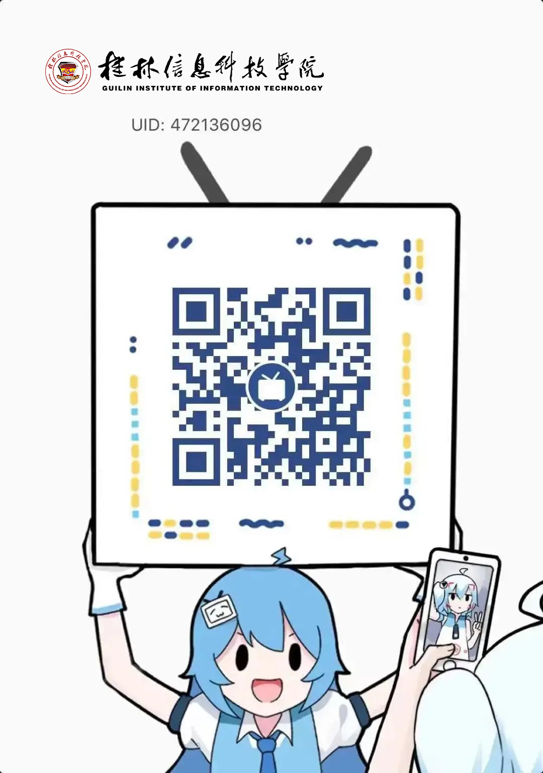 扫码关注学校官方B站观看直播