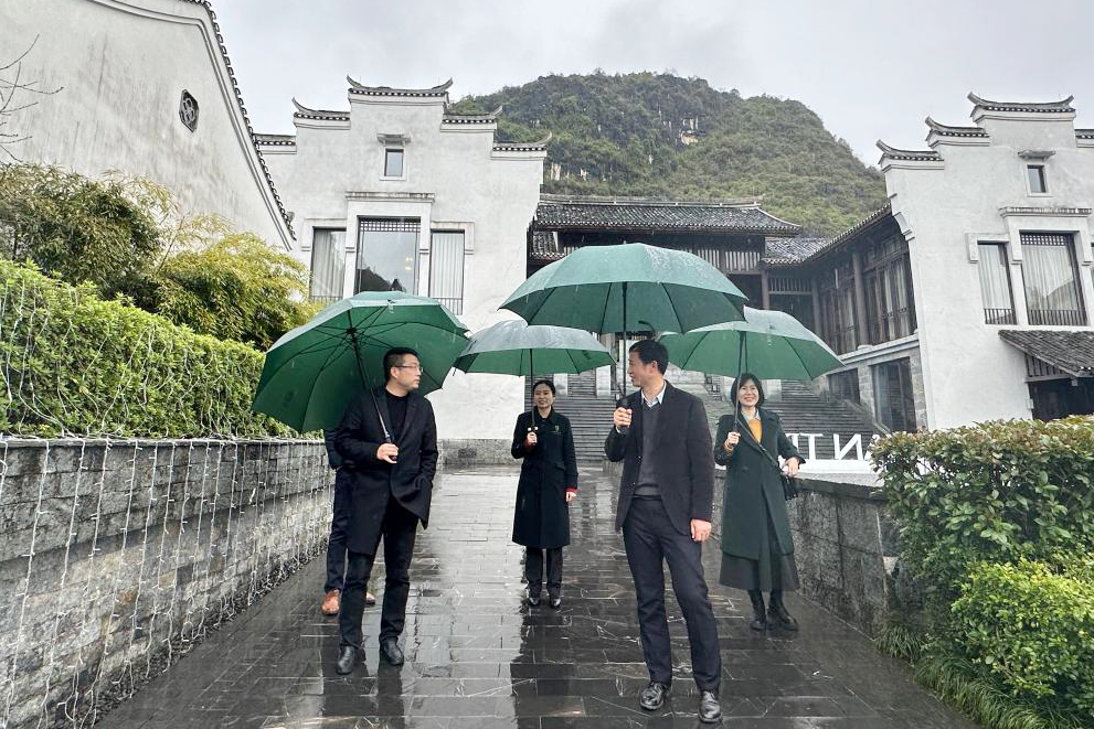 2月9日,学校副校长陈智勇一行4人走访了阳朔悦榕庄酒店,与酒店副总经理朱博等公司领导深入交流,外贸与外语学院和招生就业处相关教师陪同走访。