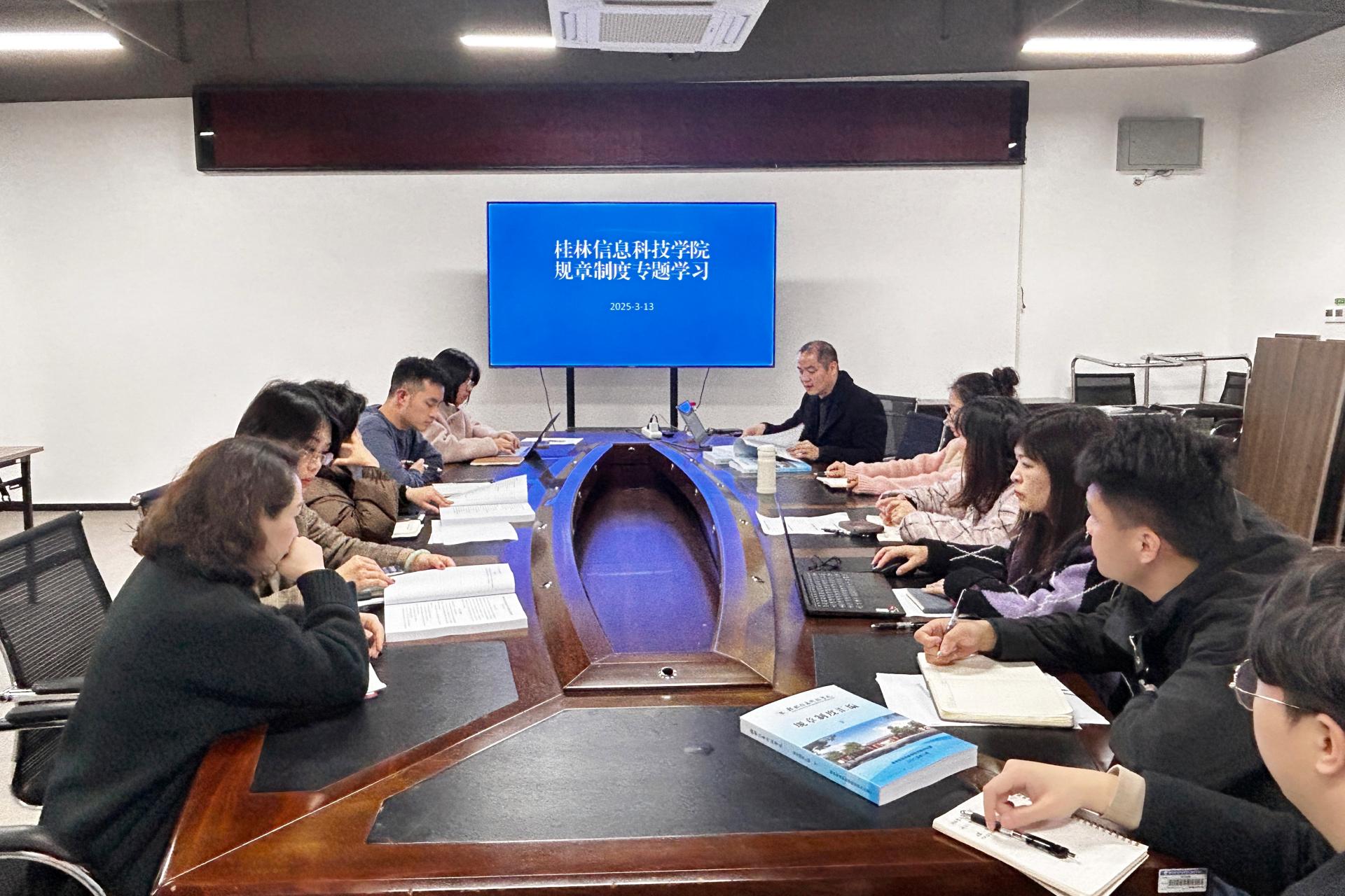 3月13日,党委宣传部于知行楼818会议室组织召开了《beat365在线唯一官网规章制度汇编》学习会议。在学校不断发展、各项工作持续推进的大背景下,此次会议目的在于助力部门老师深入理解学校各项规章制度,进一步提升工作业务水平,为学校宣传工作的高效开展筑牢基础。会议由党委宣传部副部长张文源主持。