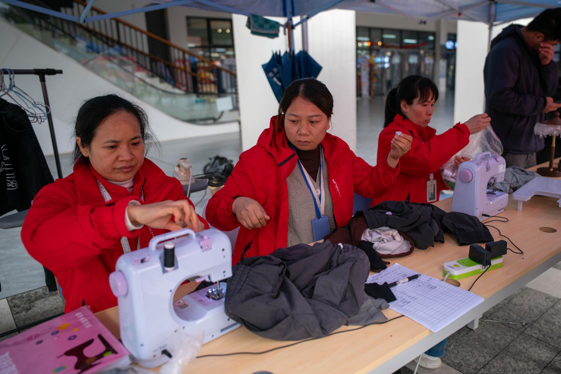 后勤服务中心推出“爱心裁缝,家电维修”特色服务,现场缝补衣物、修理小型家电,将暖心服务送到师生身边。