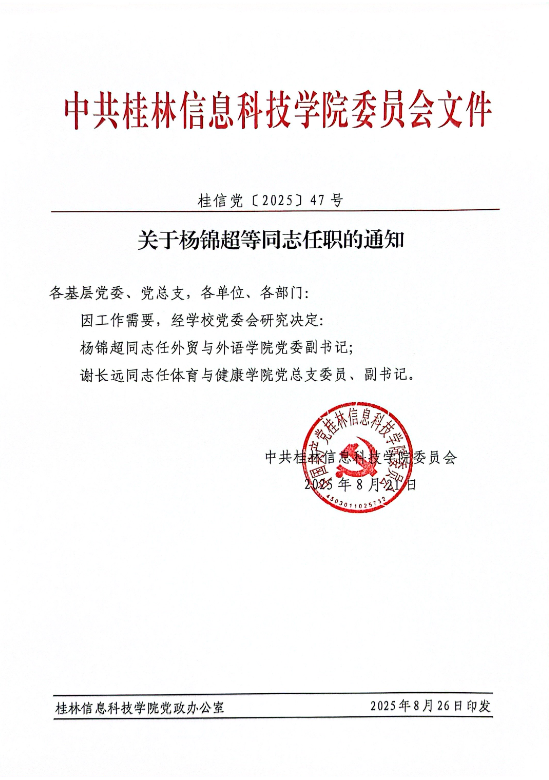 关于杨锦超等同志任职的通知
