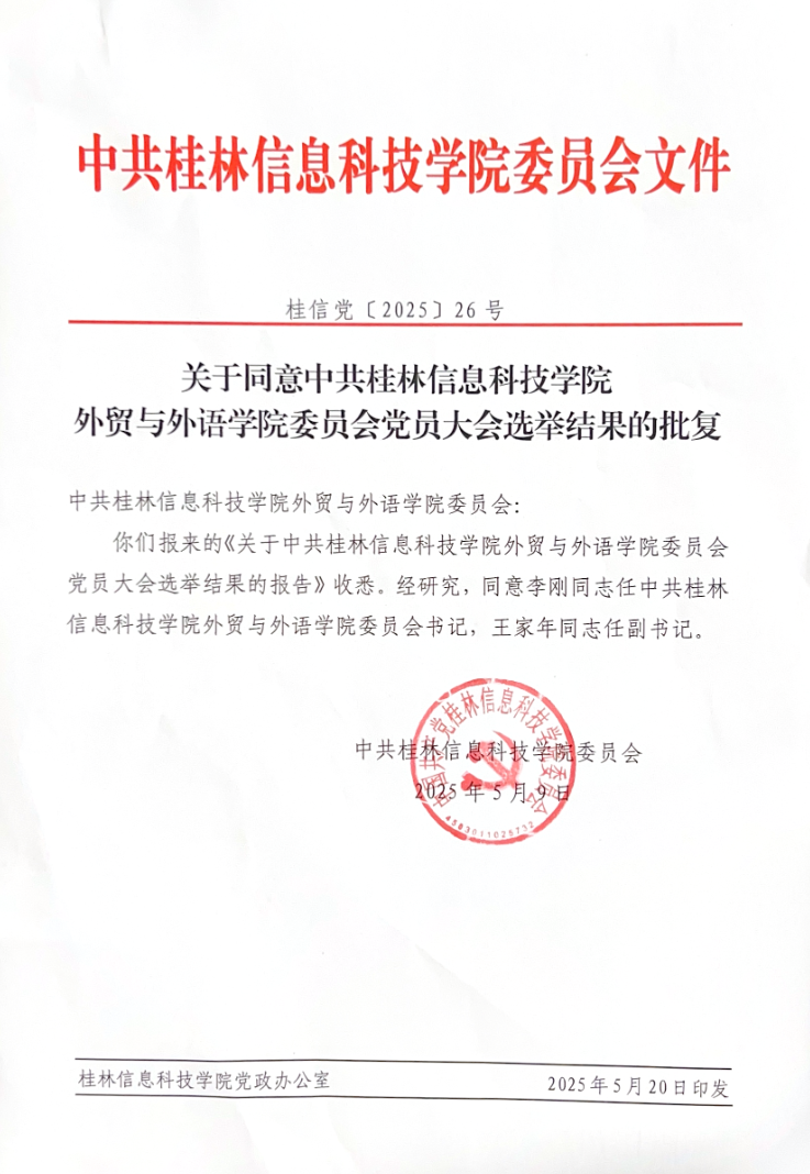 关于同意中共beat365在线唯一官网外贸与外语学院委员会党员大会选举结果的批复