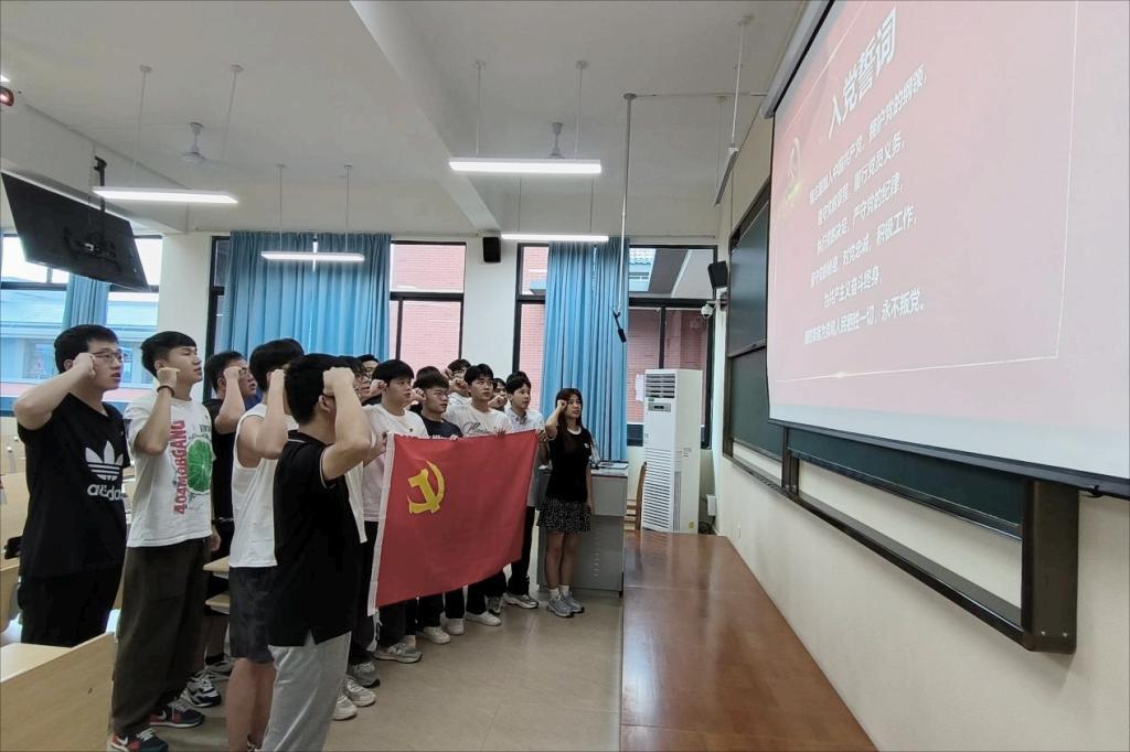 活动中,各党支部教师党员为学生党员们送上生日祝福,发放政治生日礼物。政治生日礼物承载着党组织对每一位党员的诚挚祝福和殷殷期盼,仪式朴素而庄重,唤起了党员们入党时的初心。随后,全体党员在第二学生党支部书记邓寿任的带领下,高举右手握拳宣誓,重温入党誓词。宣誓声音铿锵有力,牢记初心使命,明确奋斗目标,让党员们再一次接受了深刻的思想洗礼和精神锤炼。参加活动的党员纷纷表示,同过政治生日主题党日活动让大家感受到了组织的温暖和关怀,特别有意义,今后将更加牢记共产党员身份,恪守工作职责,主动担当,积极作为,为学校高质量发展贡献青春和力量。