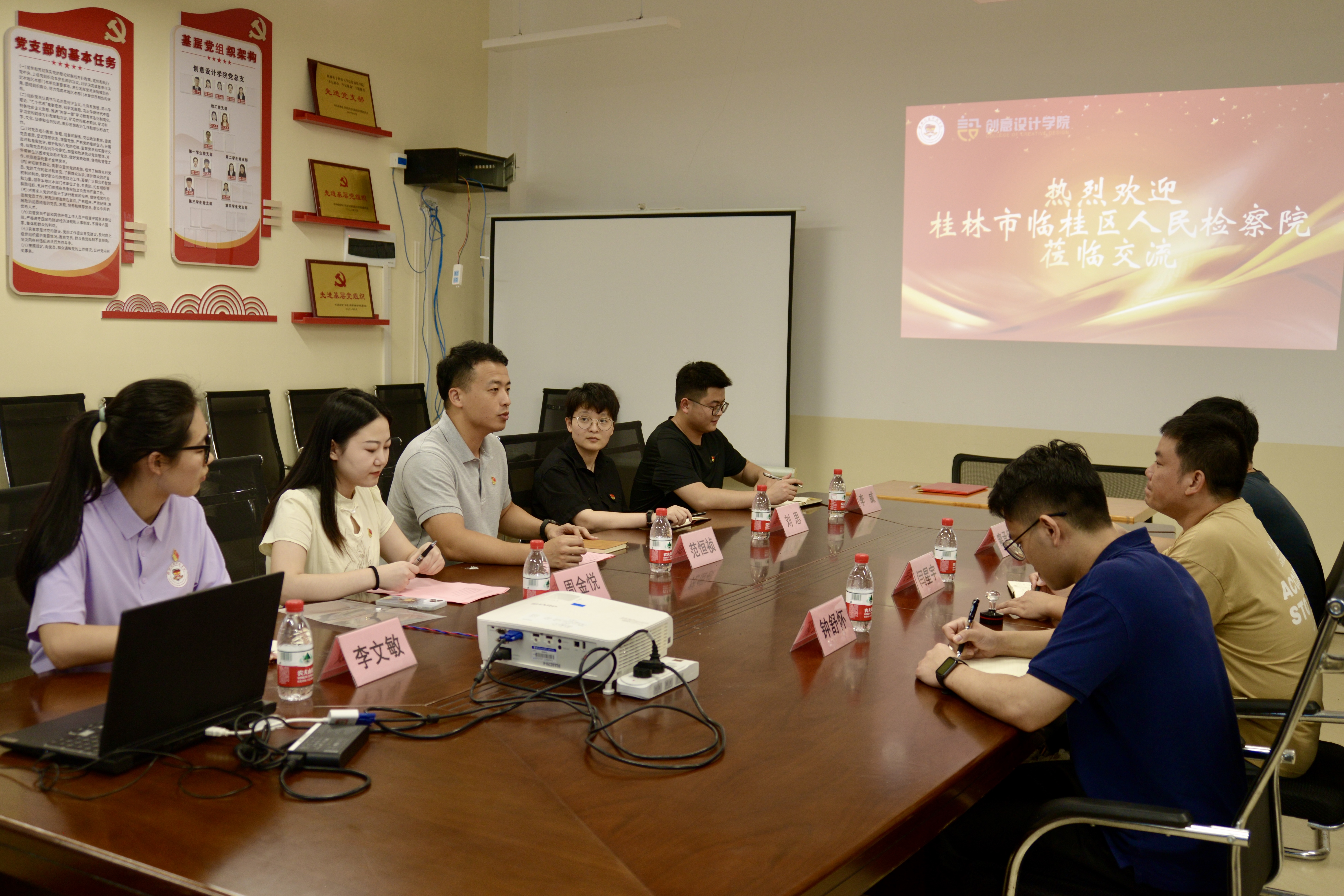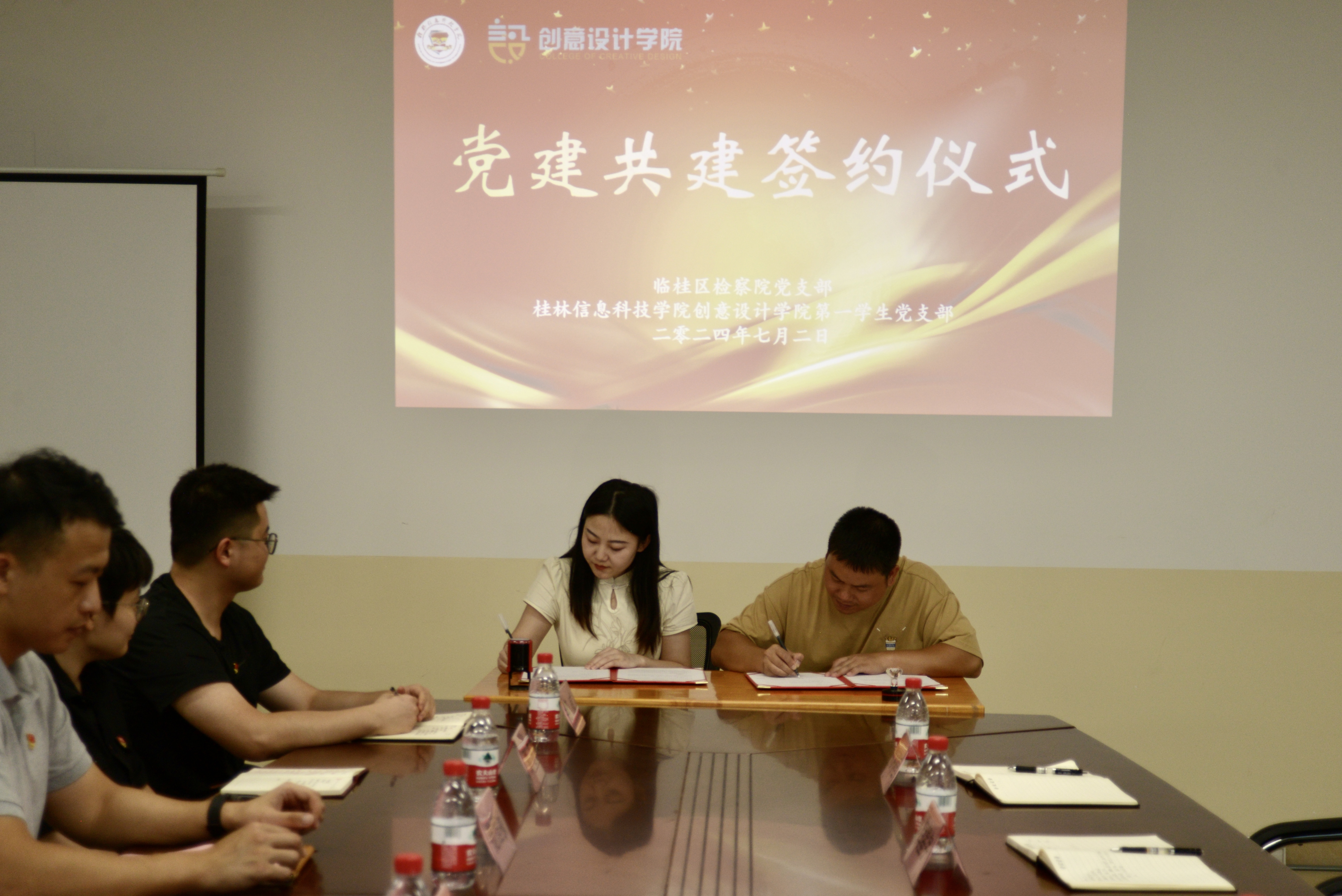 为加强社区党组织建设,充分发挥共产党员先锋模范作用,发挥检察机关党支部与高校党支部在推动法治临桂建设的作用,7月2日创意设计学院第一学生党支部与临桂区检察院党支部举行党建共建签约仪式。学院党总支书记范恒祯主持会议,临桂区检察院办公室主任闫星宇一行人、学院各党支部书记、团委书记、组织员参加会议。