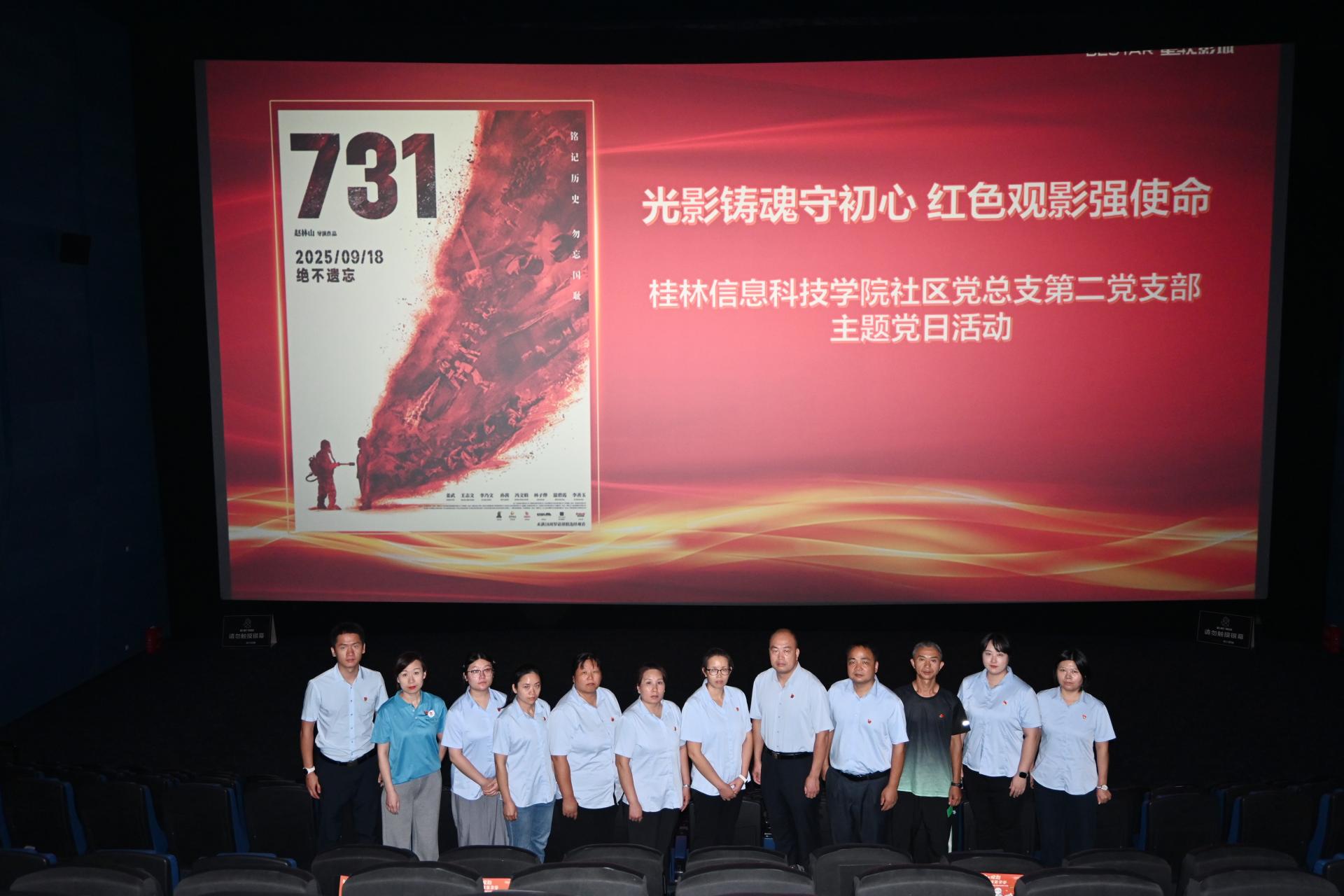 9月19日下午,社区党总支第二党支部以 “铭记历史、缅怀先烈、勇担使命” 为主题,组织全体党员集中观看历史题材电影《731》,通过光影艺术重温那段沉重的历史,筑牢党员的理想信念与责任担当。