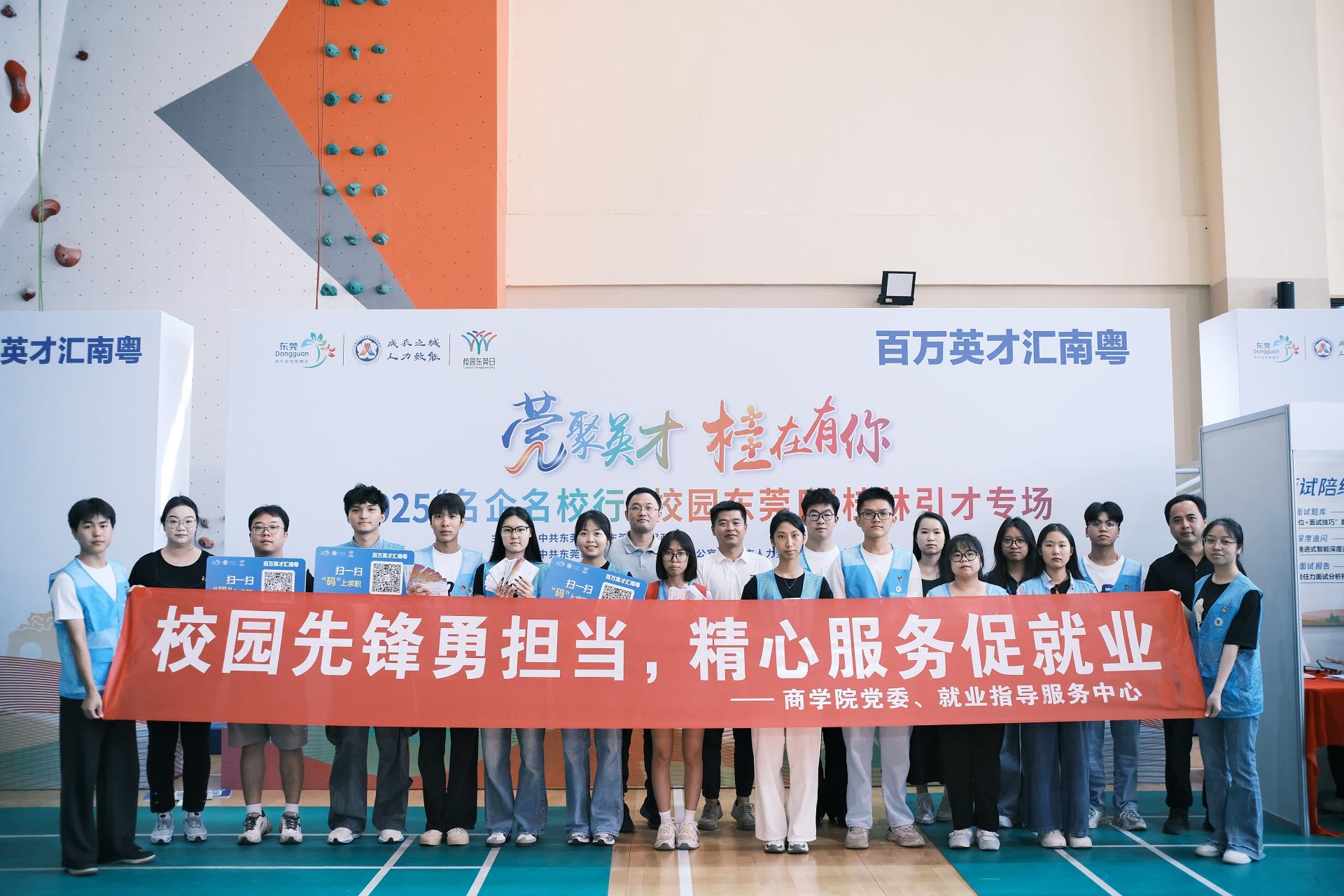 为助力毕业生高质量就业,精准对接校企人才需求,9月27日上午,商学院党委组织党员志愿者服务2025“名企名校行,校园东莞日”桂林引才专场校园招聘会。