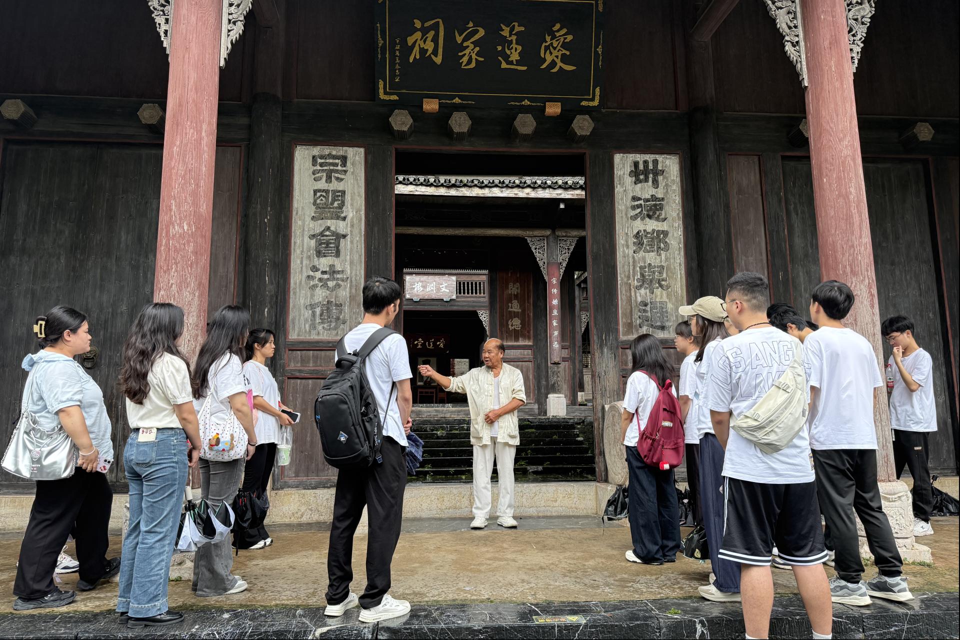 全国廉政教育基地——桂林市灵川县江头村,位于风景秀丽的灵川县九屋镇,拥有上千年的历史底蕴。这里不仅是北宋文学家、哲学家周敦颐后裔的聚居地,更是中国传统村落和廉政文化的重要载体。在村民委员会主任的引导下,机电工程学院师生党员先后参观了江头村的爱莲家祠、进士路、秀才巷、聪明井等具有标志性的历史建筑和文化遗迹。被其中所蕴含的深厚文化底蕴和优良家风深深感染。周氏家族历代官员廉洁奉公、勤政爱民的事迹,让大家感触颇深,深受教育。随后,师生们来到江头村的廉政文化广场,举行了庄严的宣誓仪式。在鲜艳的党旗下,大家高举右手,庄严宣誓,誓言铿锵有力,回荡在广场上空,激励着每一位师生不忘初心、牢记使命,为党和人民的事业不懈奋斗。