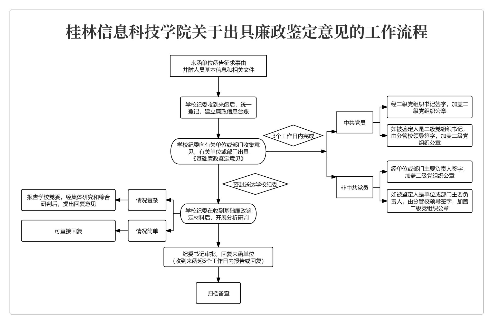 (四)意见回复:廉政鉴定意见经学校纪委书记审批后,以书面意见形式回复来函单位。