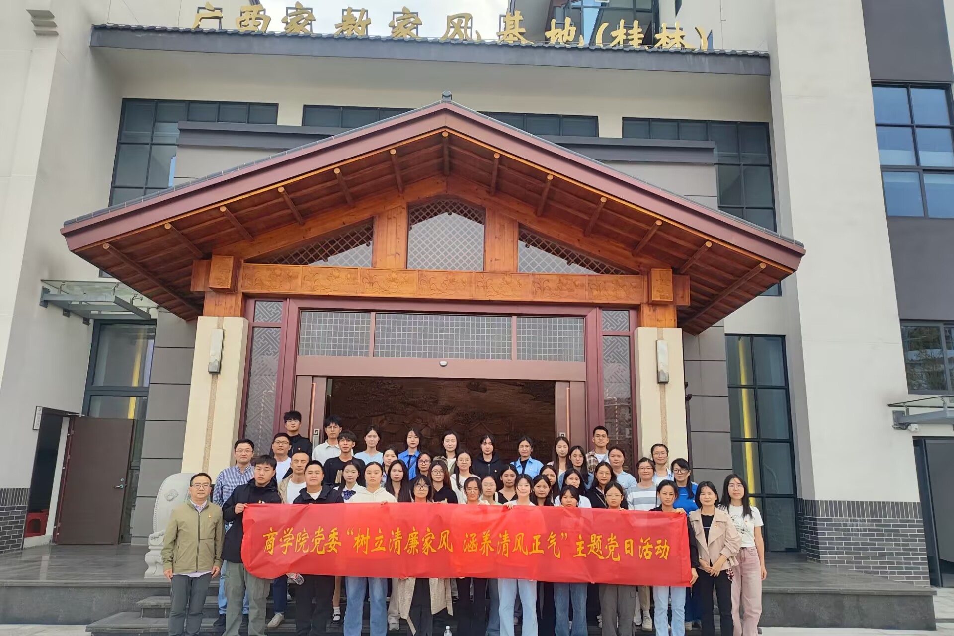 为深入推进清廉学校建设,进一步弘扬清廉家风文化,商学院于11月4日组织师生党员前往广西家教家风教育基地(桂林),开展以“树立清廉家风 涵养清风正气”为主题的党日活动。学院领导班子、党委委员、师生党员代表参加活动。