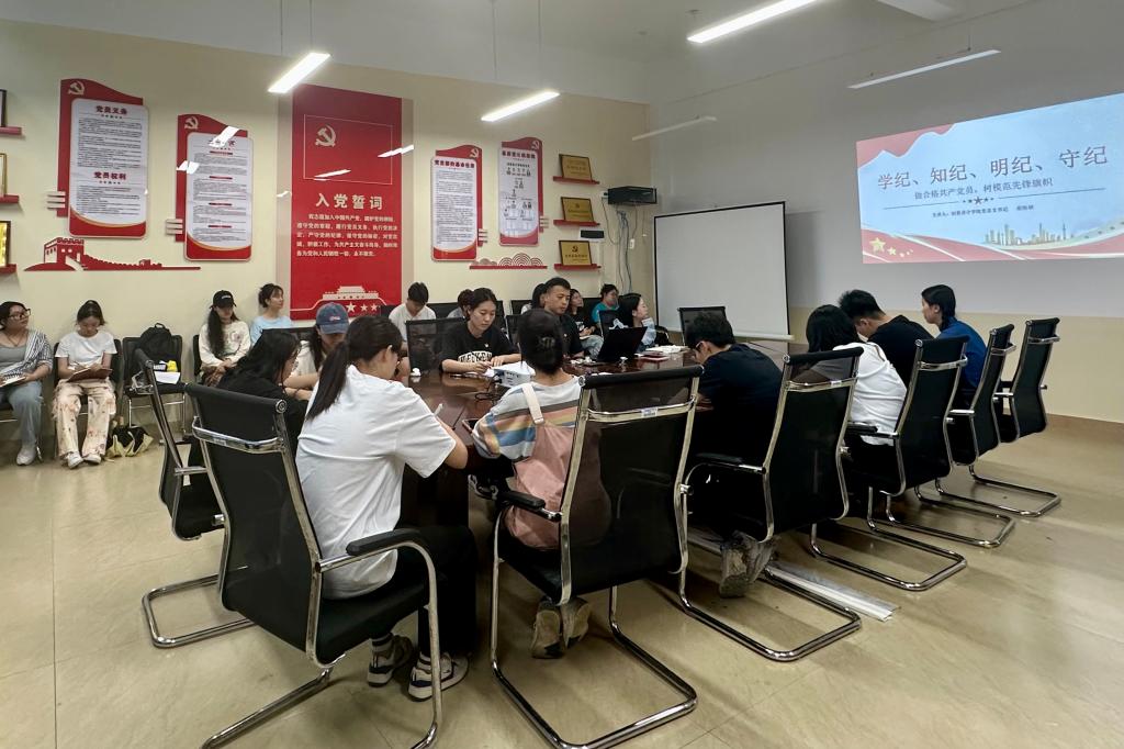 为深入学习贯彻习近平总书记关于党的纪律建设的重要论述,全面贯彻《中国共产党纪律处分条例》,深化党纪学习教育,进一步增强师生党员的政治定力、纪律定力、道德定力、抵腐定力,6月26日,创意设计学院党总支书记范恒祯为学生支部全体师生党员讲授了以“学纪、知纪、明纪、守纪——做合格共产党员,树模范先锋旗帜”为主题的纪律党课。