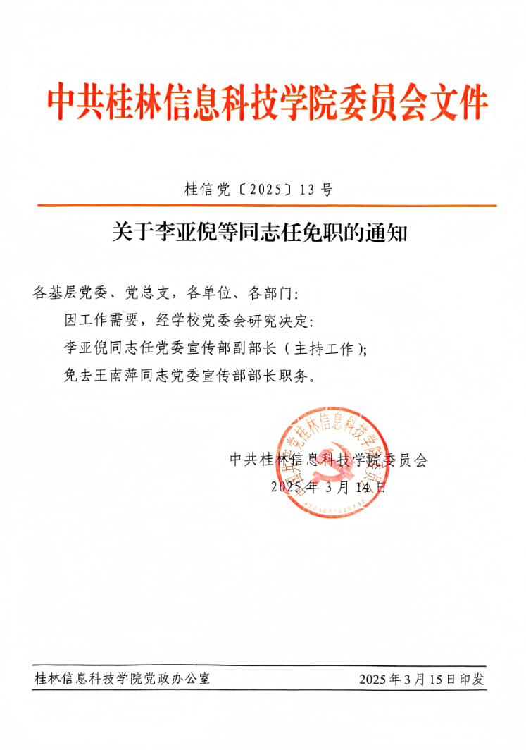 关于李亚倪等同志任免职的通知