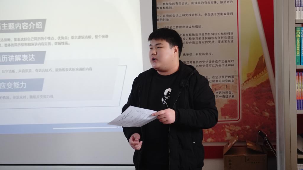 经过前期评选,7名优秀选手最终进入决赛。决赛中选手们依次上台结合ppt展示自己的简历,介绍其简历的设计思路及方法。经过一番角逐,产生一等奖1名、二等奖2名、三等奖2名、优胜奖2名。最后,贾旺旺老师就各位选手的简历内容及选手表现情况进行点评,分析了选手们的优势与不足并给予了建设性意见。
