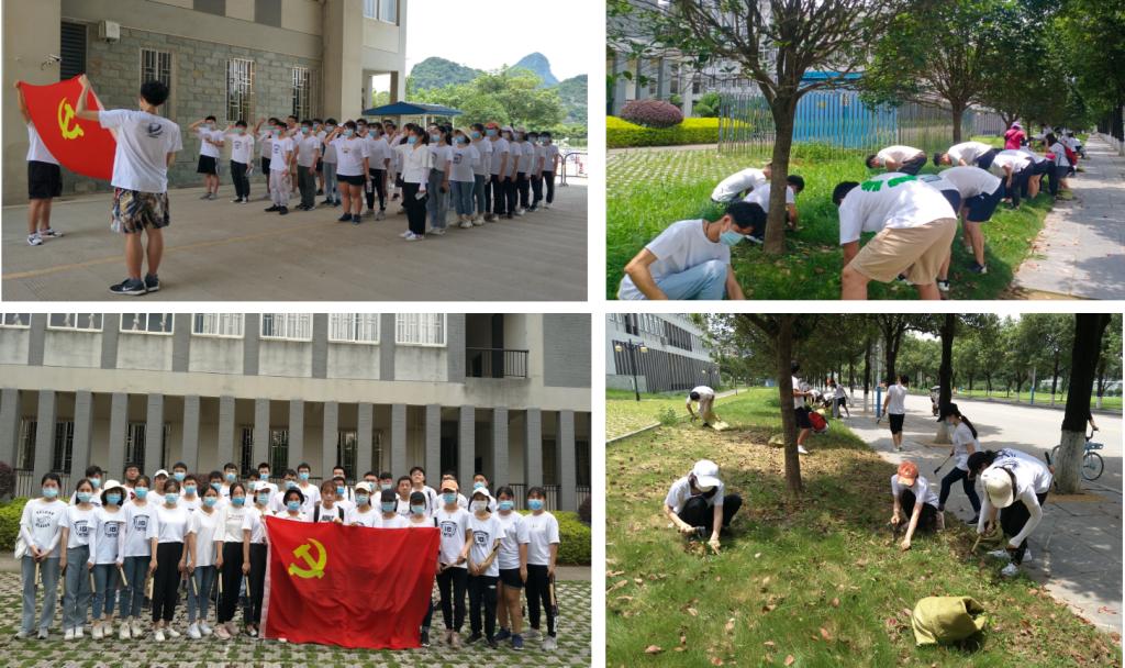 本次活动包含2项内容,首先党员们重温了入党誓词,宣誓完毕后,接着进行了义务劳动,清除、搬运学院二教旁的绿化带杂草,尽管烈日炎炎,戴着口罩,却抵挡不住学生党员们为学院师生服务的热情。